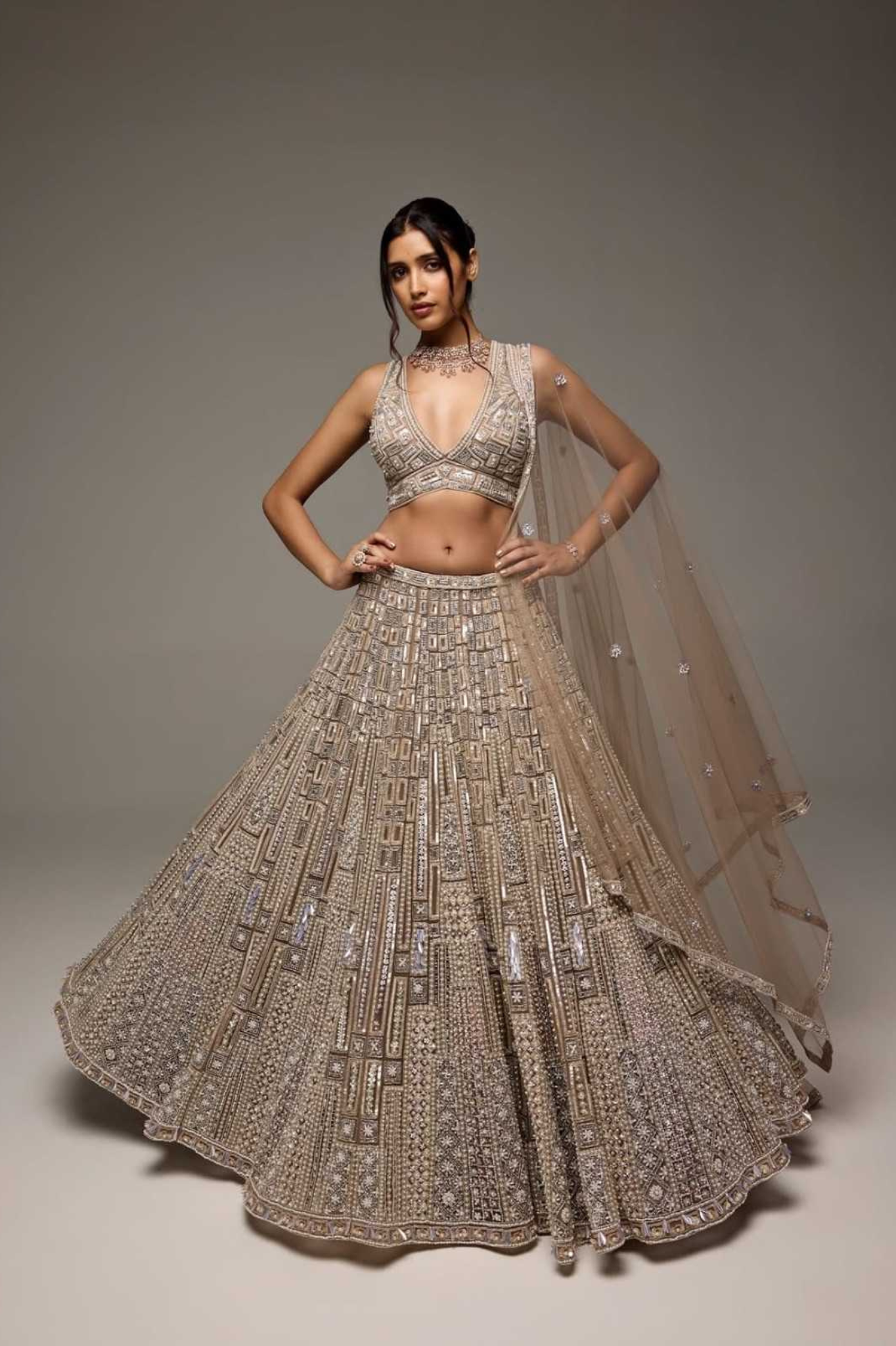 Step into luxury with this exquisite net lehenga set, adorned with delicate sequins, dori, and thread work for a glamorous...