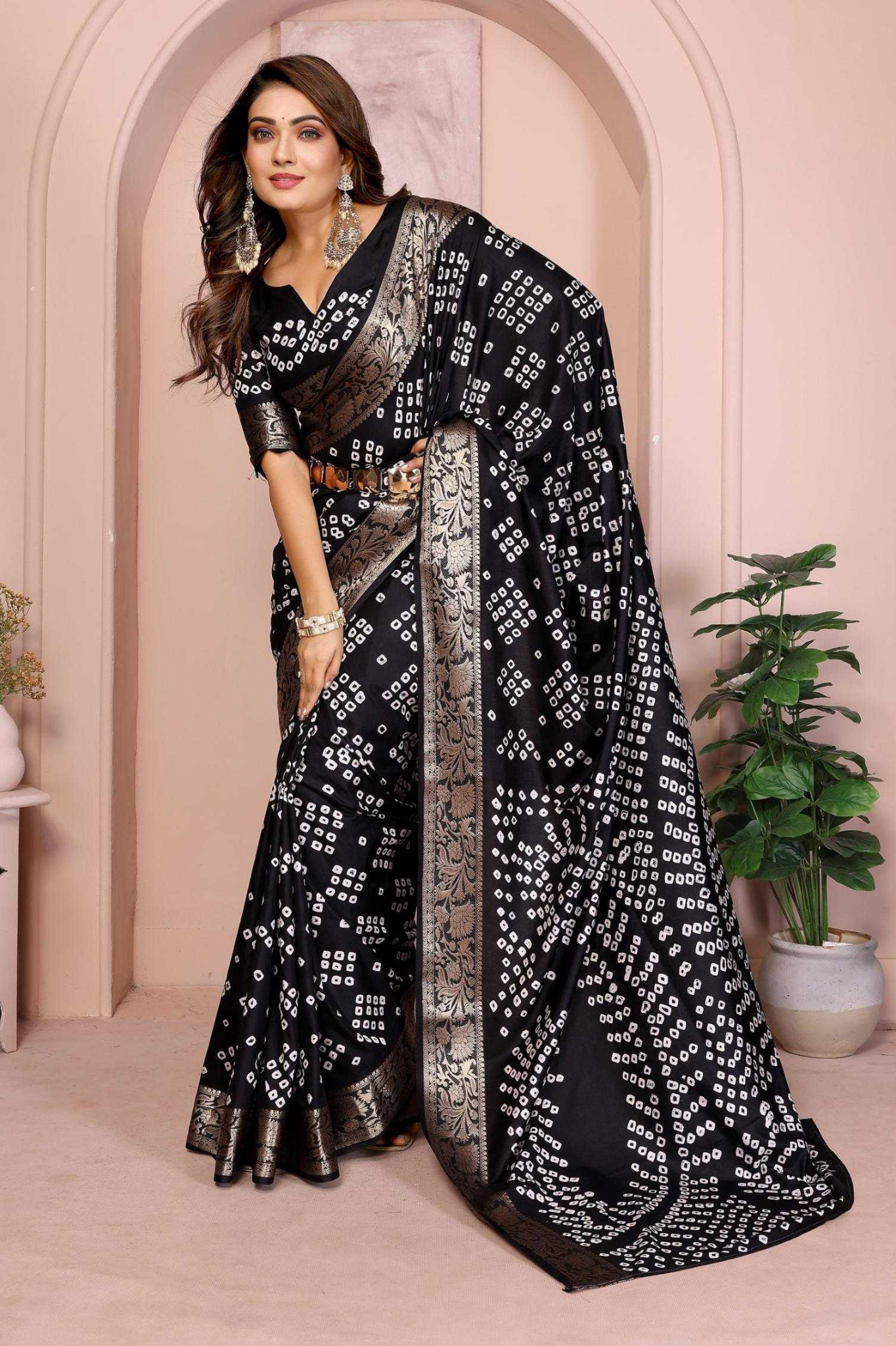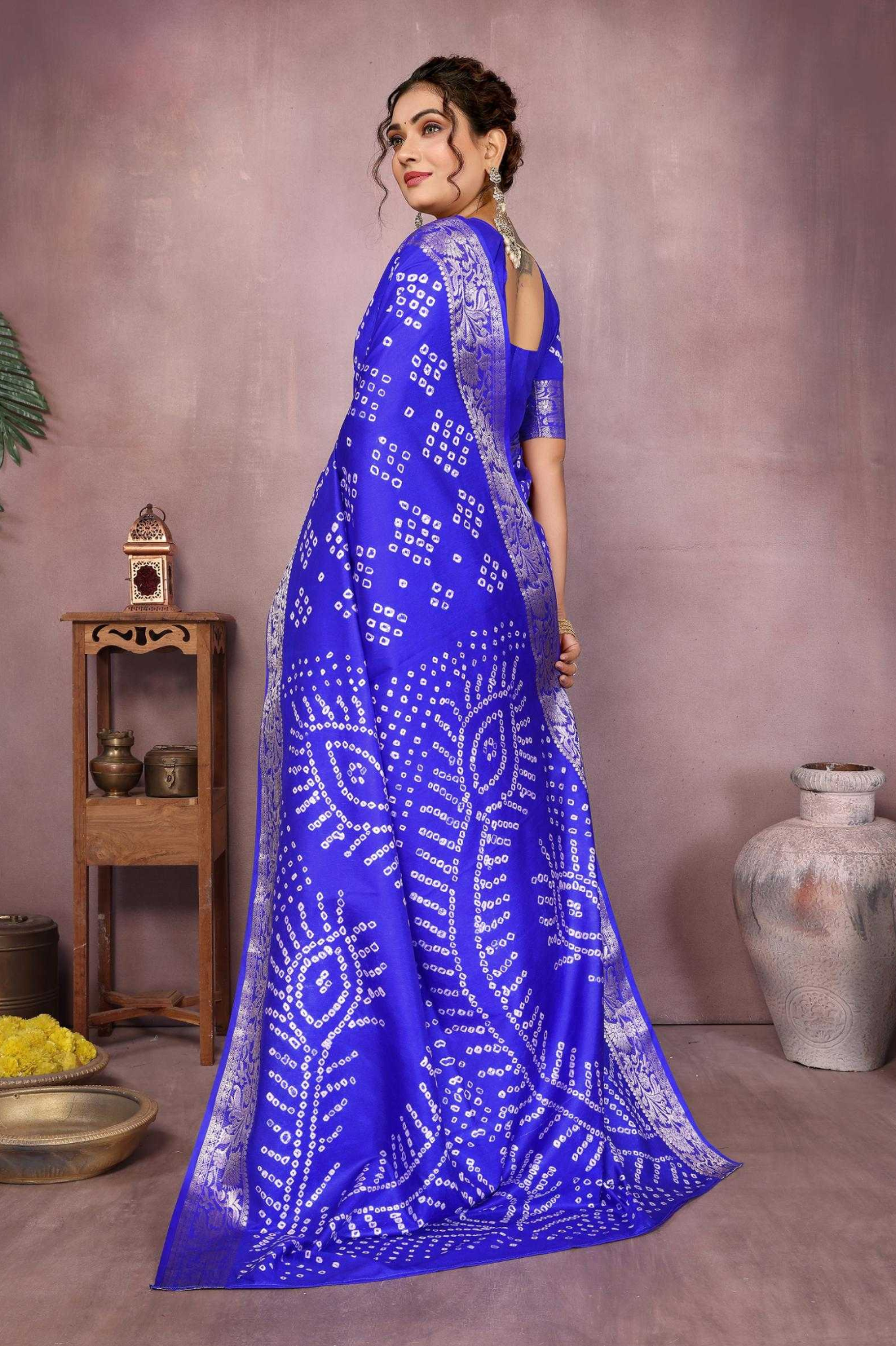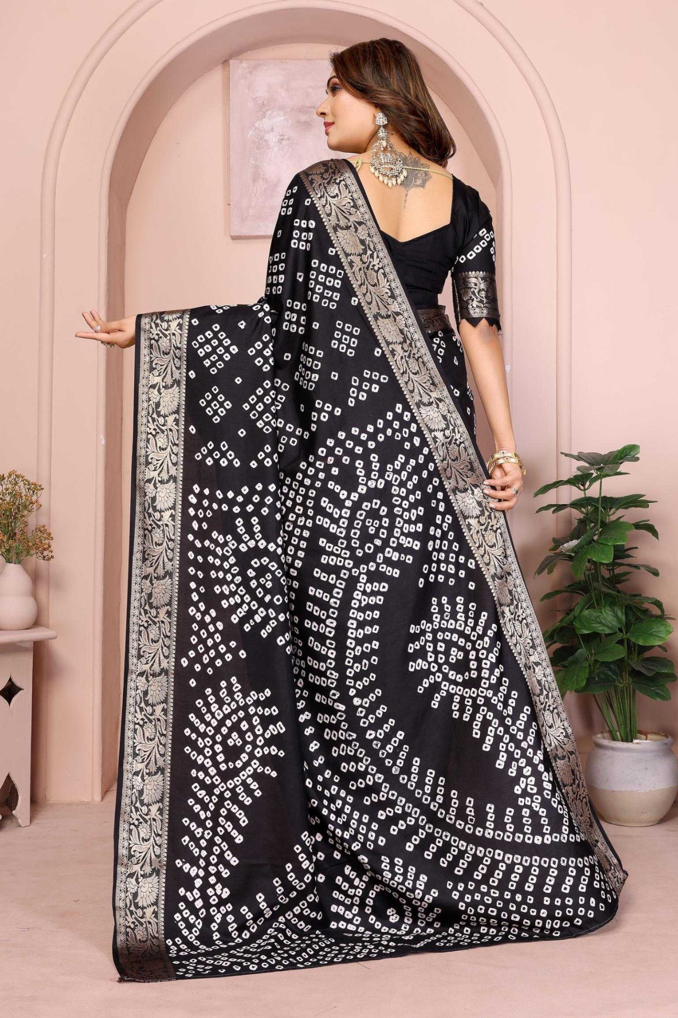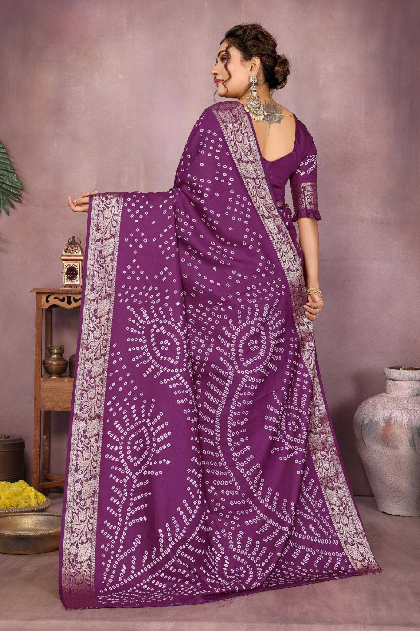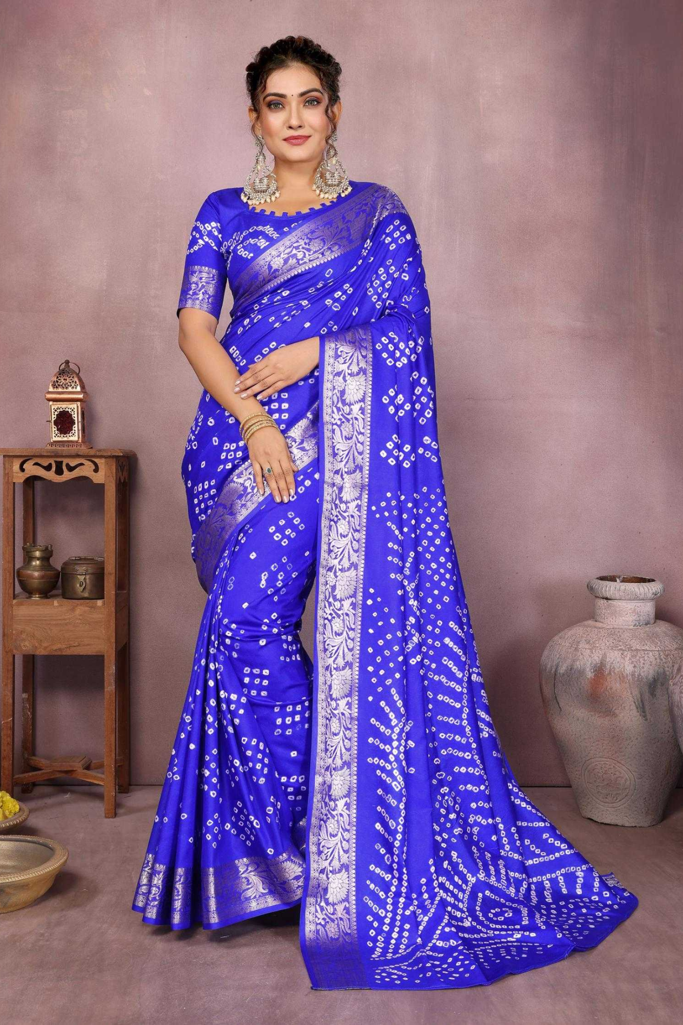 Handcrafted with fine artistry, this saree reflects the timeless beauty of traditional Bandhej while ensuring a soft, smooth drape and royal sheen.
