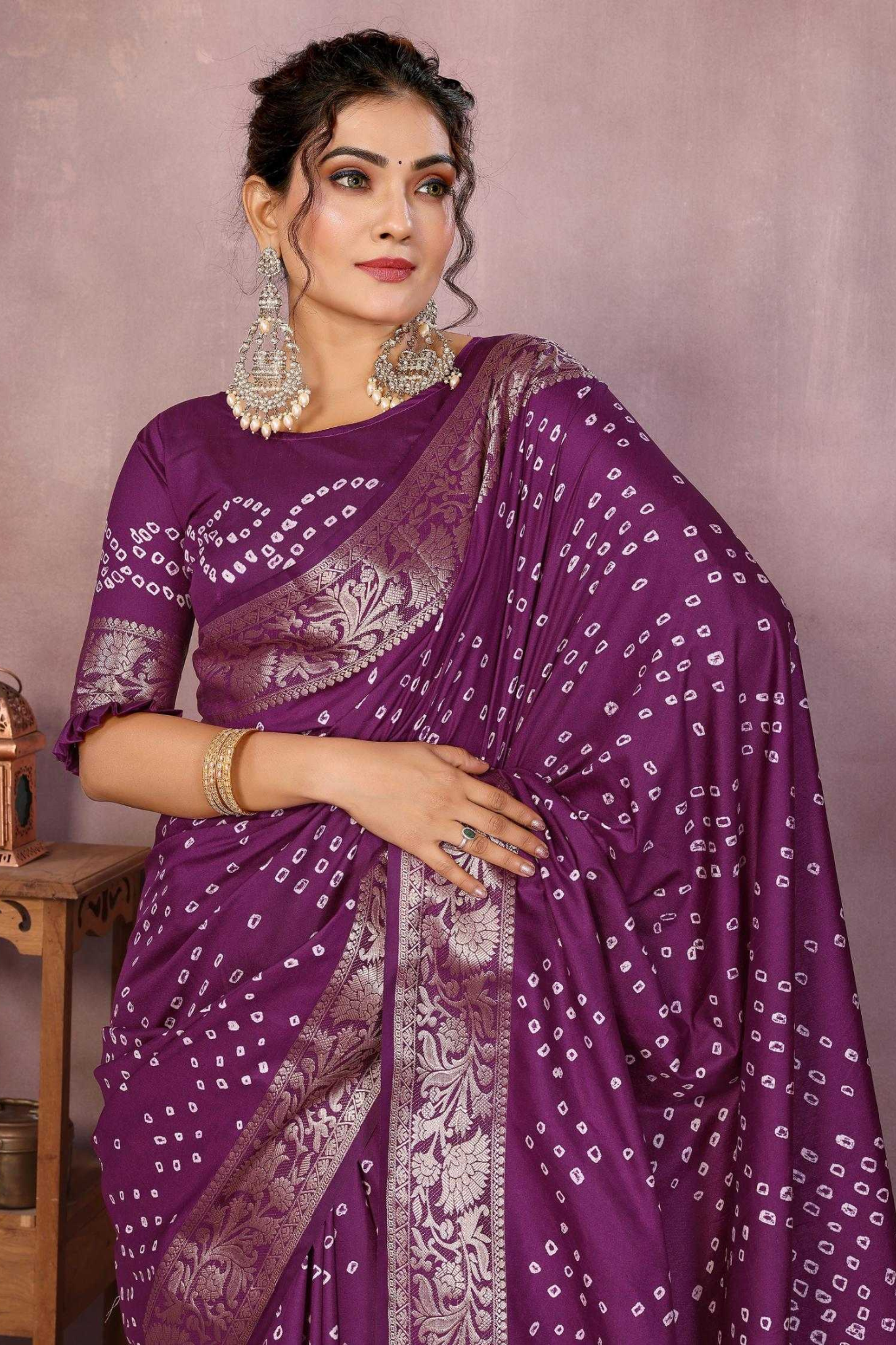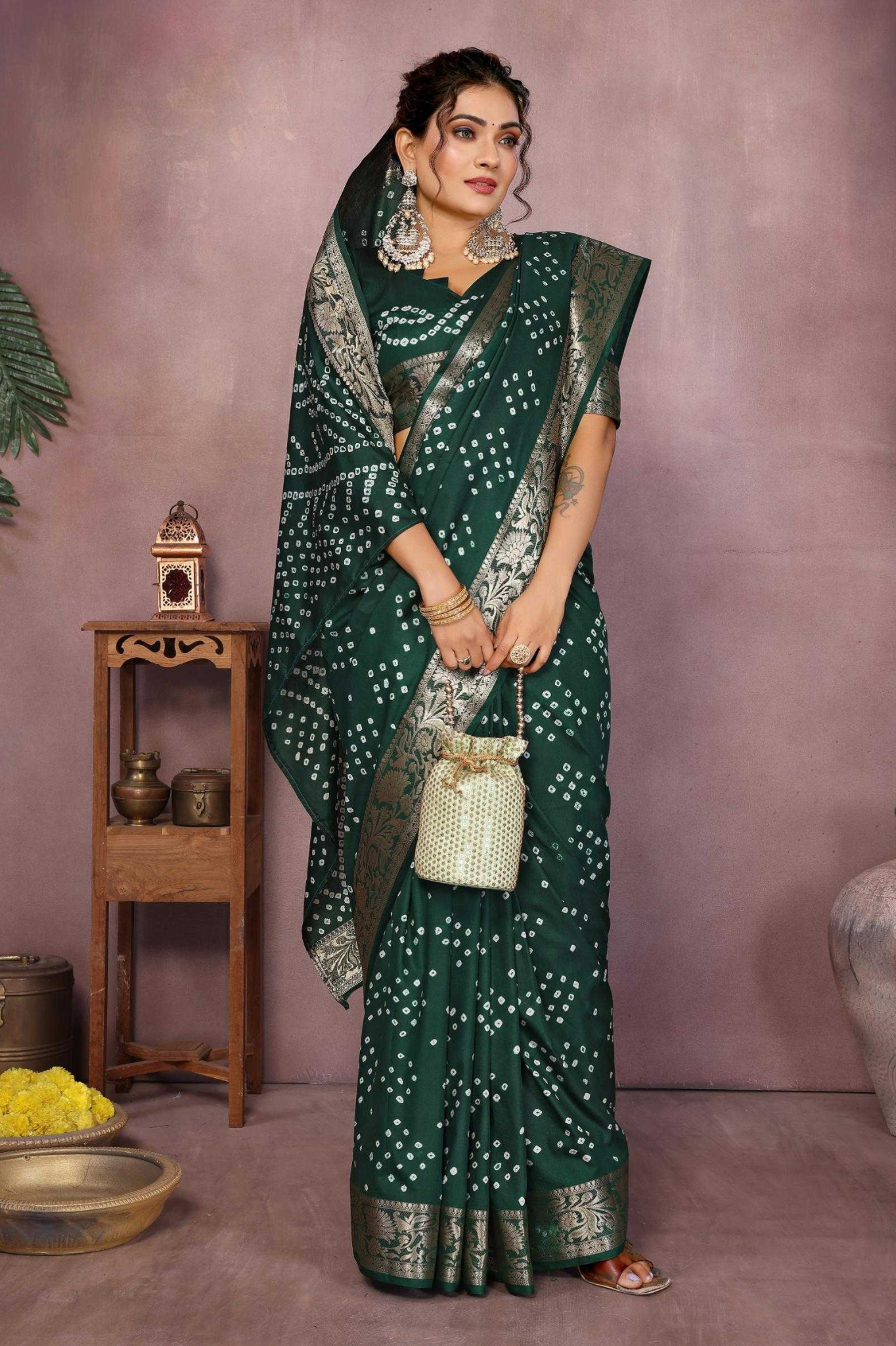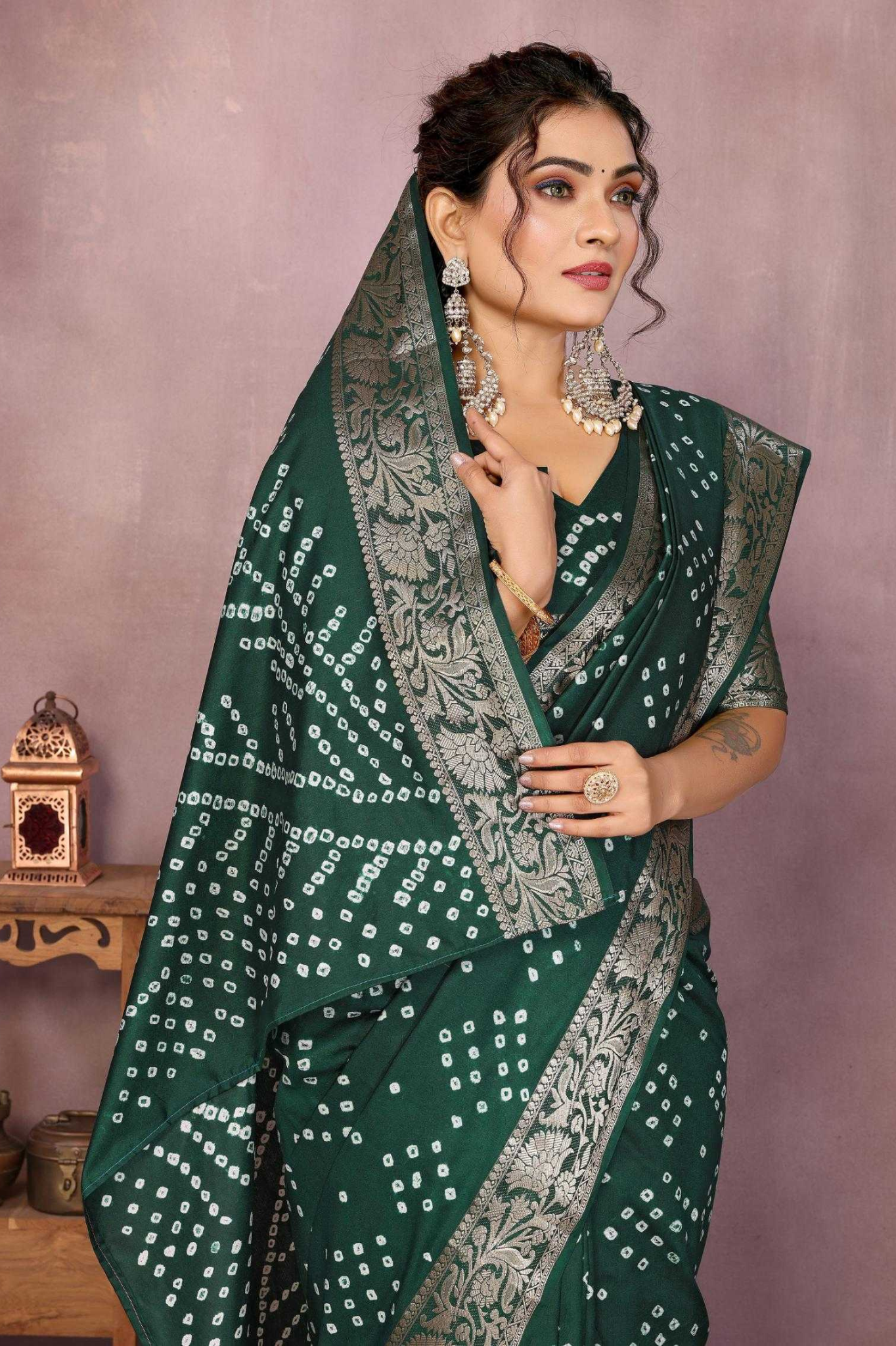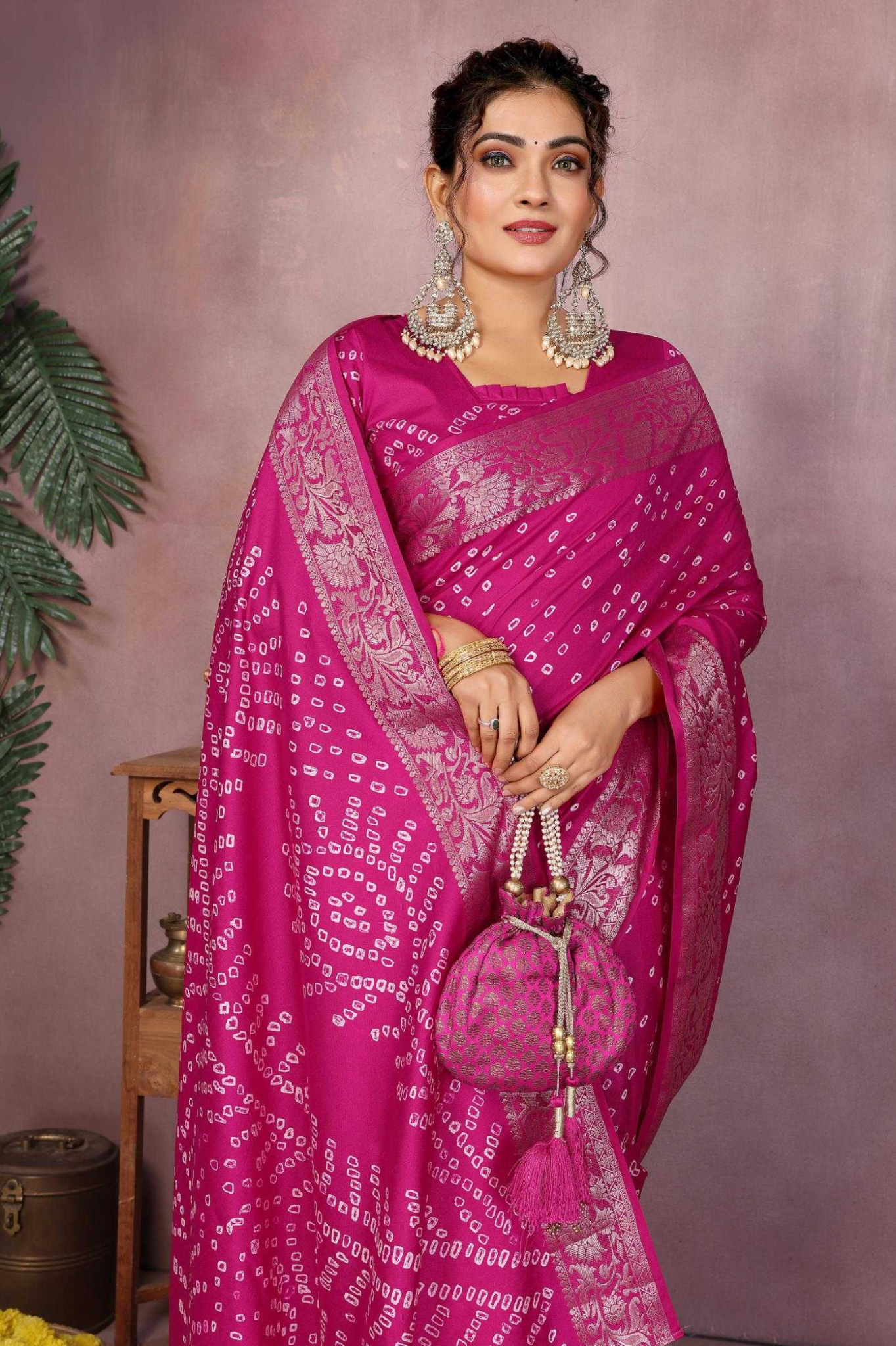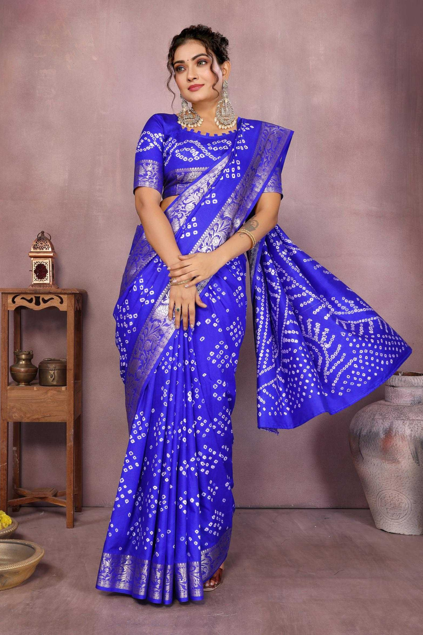 Handcrafted with fine artistry, this saree reflects the timeless beauty of traditional Bandhej while ensuring a soft, smooth drape and royal sheen.