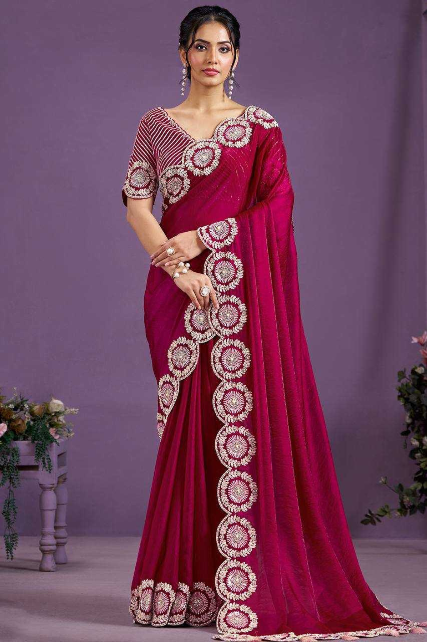 Premium Satin Embroidered Saree with Designer Arco Cut Work Border