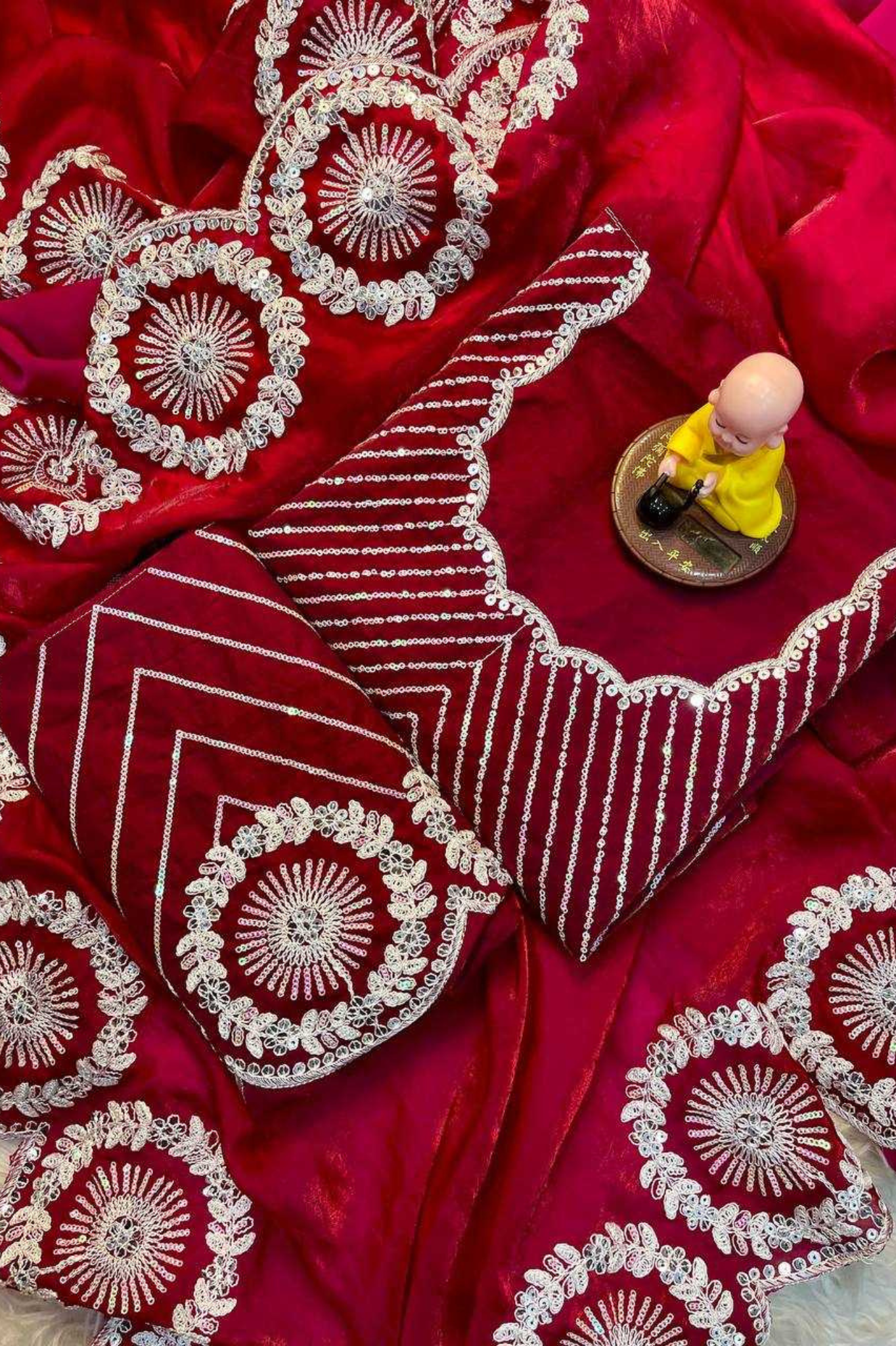 Drape yourself in elegance with this premium fancy satin saree, featuring exquisite dori thread and sequins embroidered work along with a designer arco cut work border that adds a touch of sophistication. The saree measures 5.50 meters and comes with a 1.00 meter fancy satin fusing blouse, designed in a V-neck style with all-over embroidery for a refined finish.