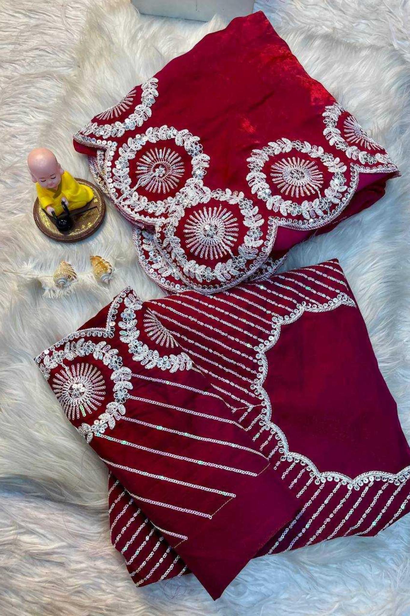 Drape yourself in elegance with this premium fancy satin saree, featuring exquisite dori thread and sequins embroidered work along with...