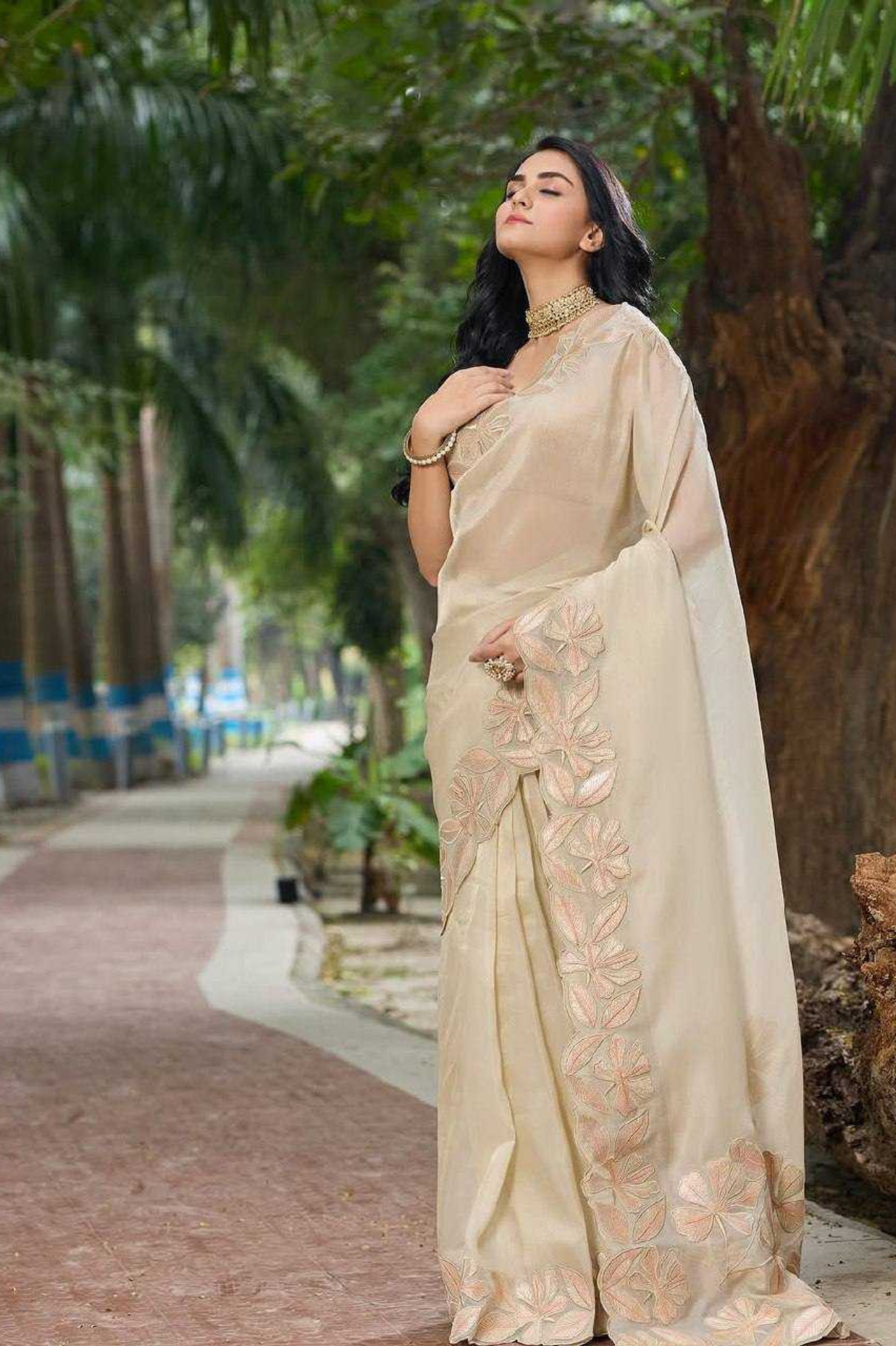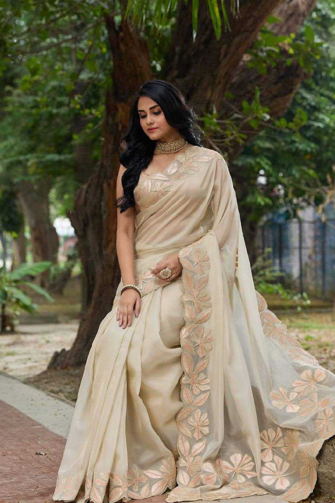 Saree Info Fabric: Pure Bright Organza Silk Work: Elegant 3mm Sequins Embroidery Work with Designer Arco Cut Floral Border Craft:...