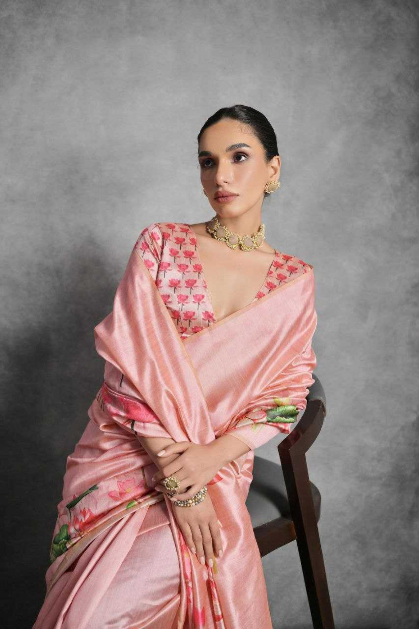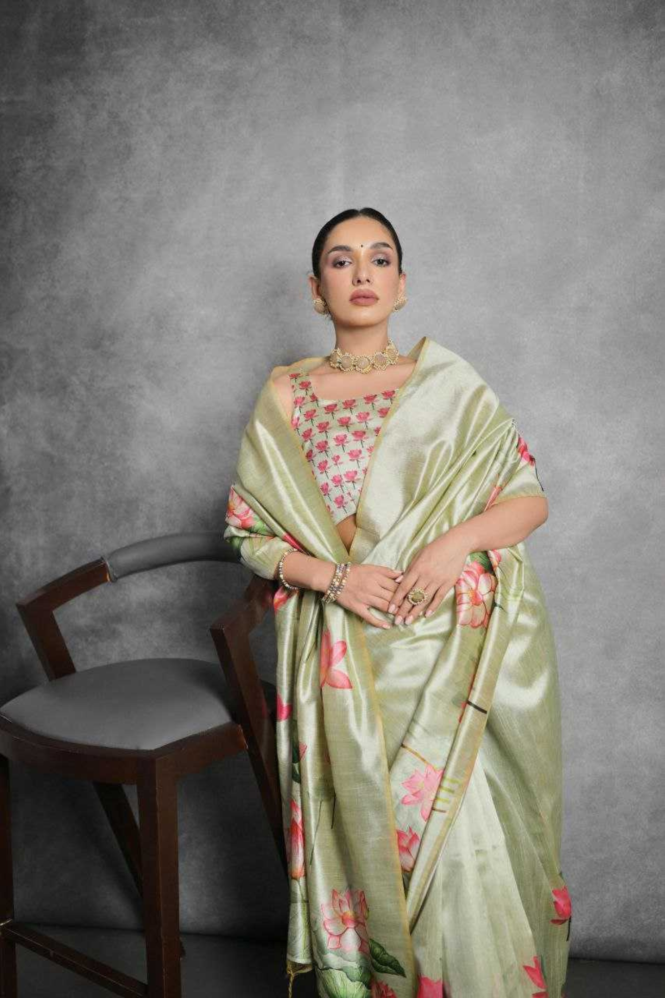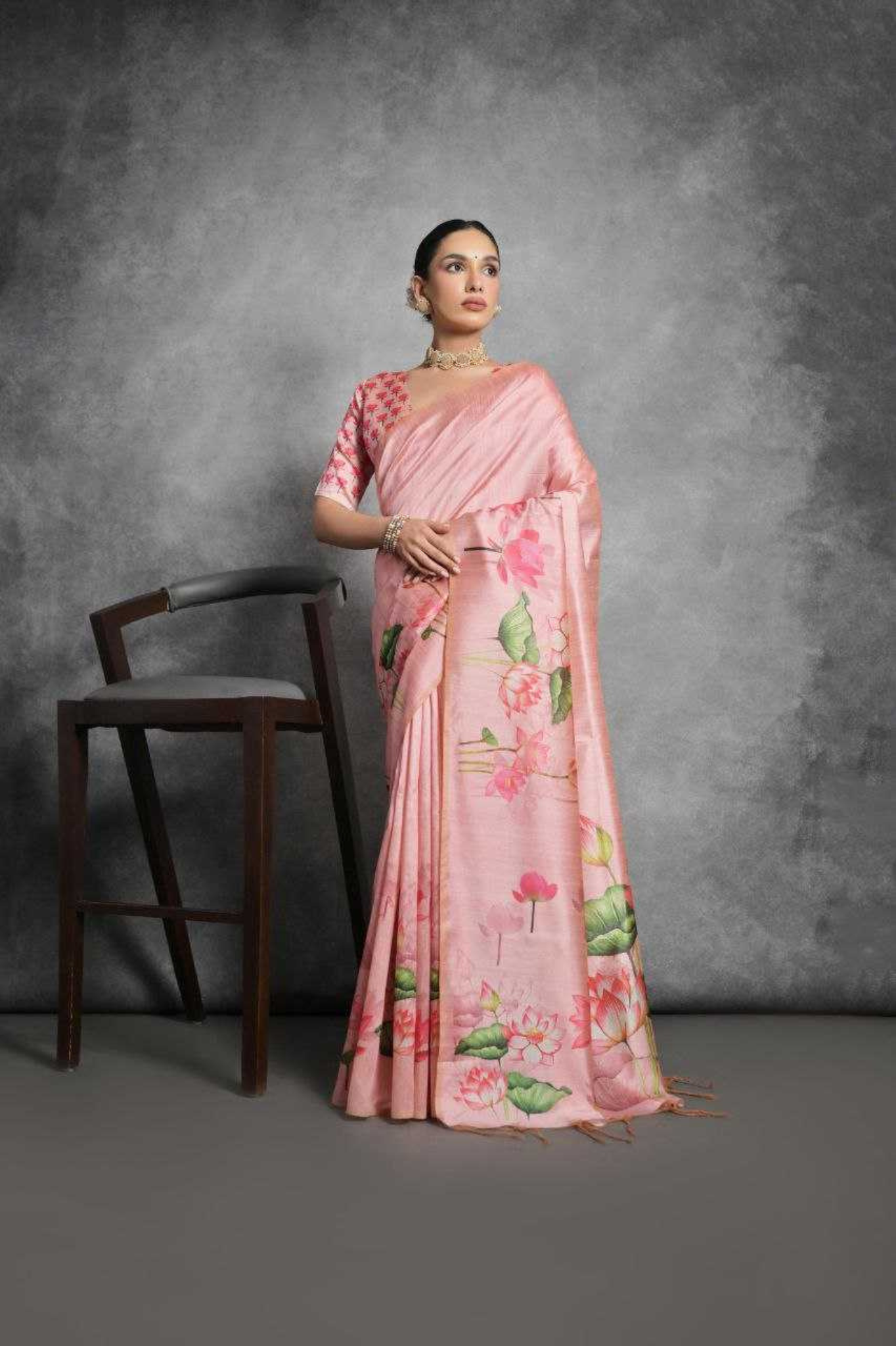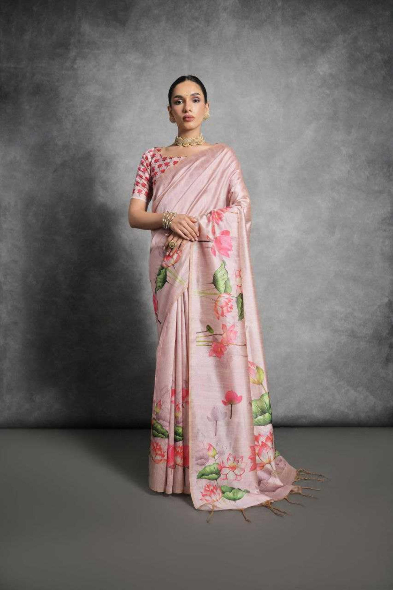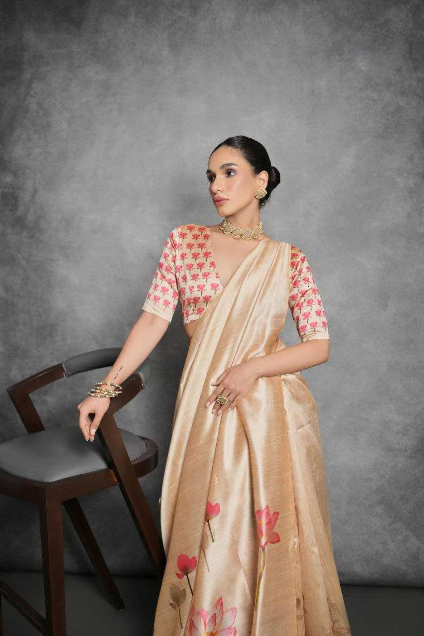 Soft Tussar Silk Saree with Elegant Lotus Print & Floral Design All Over
