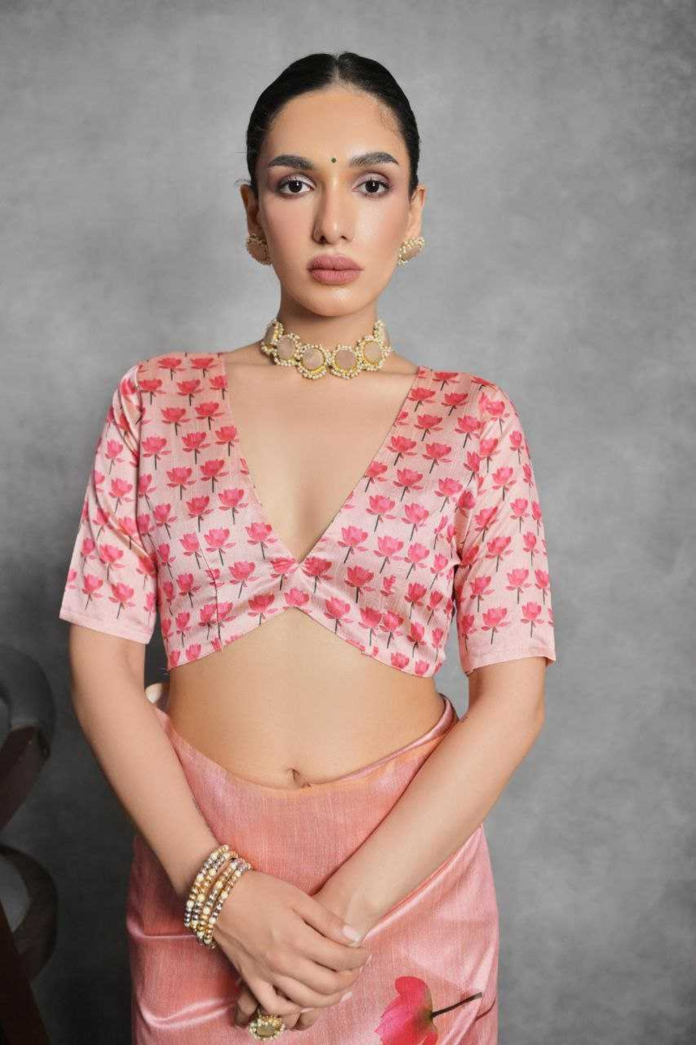 Drape yourself in effortless elegance with this Soft Tussar Silk Saree, showcasing a mesmerizing lotus print on the pallu and border. The saree features classic floral prints all over the body, giving it a sophisticated yet refreshing appeal — perfect for festive occasions, formal gatherings, or casual celebrations.