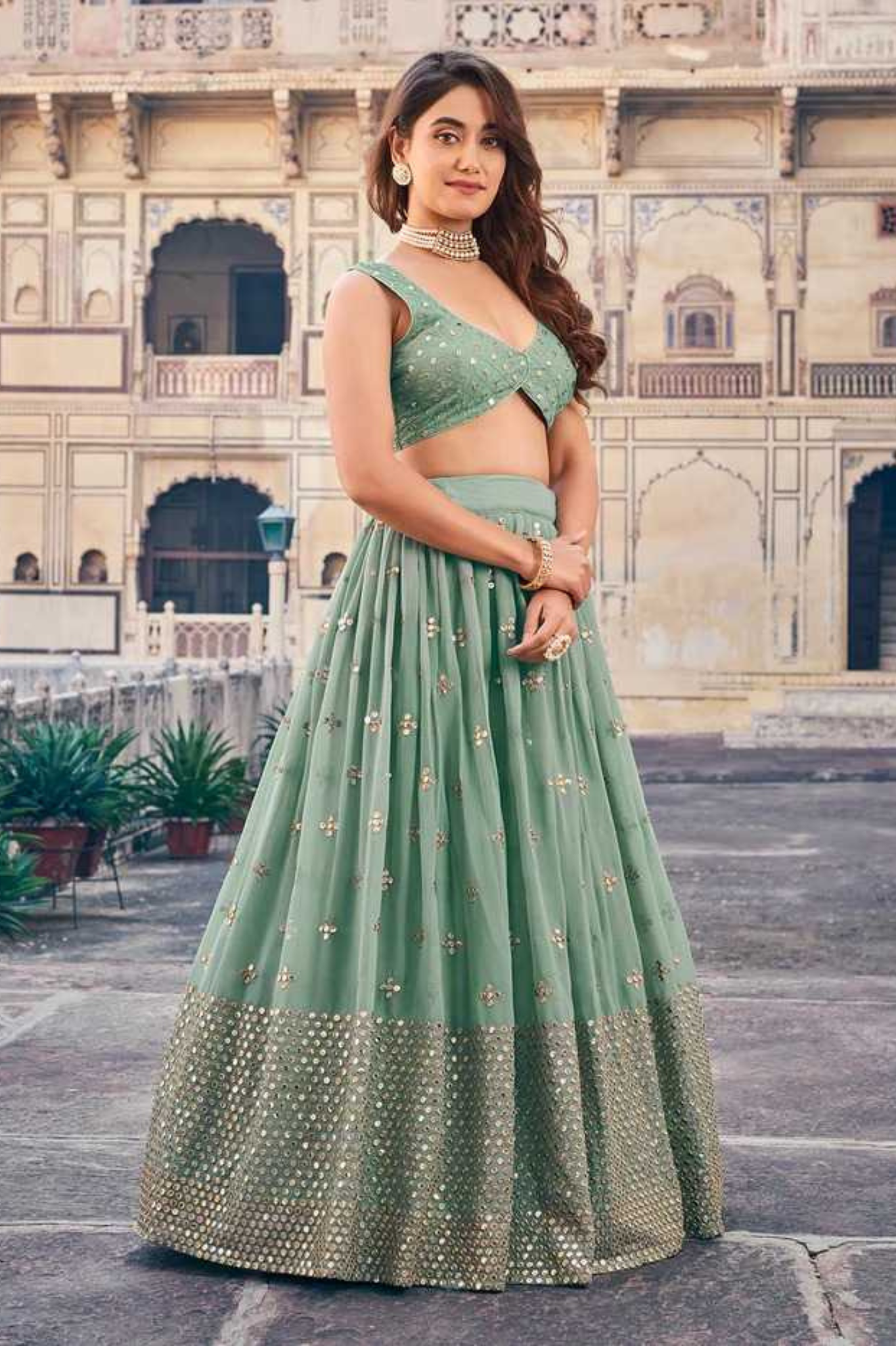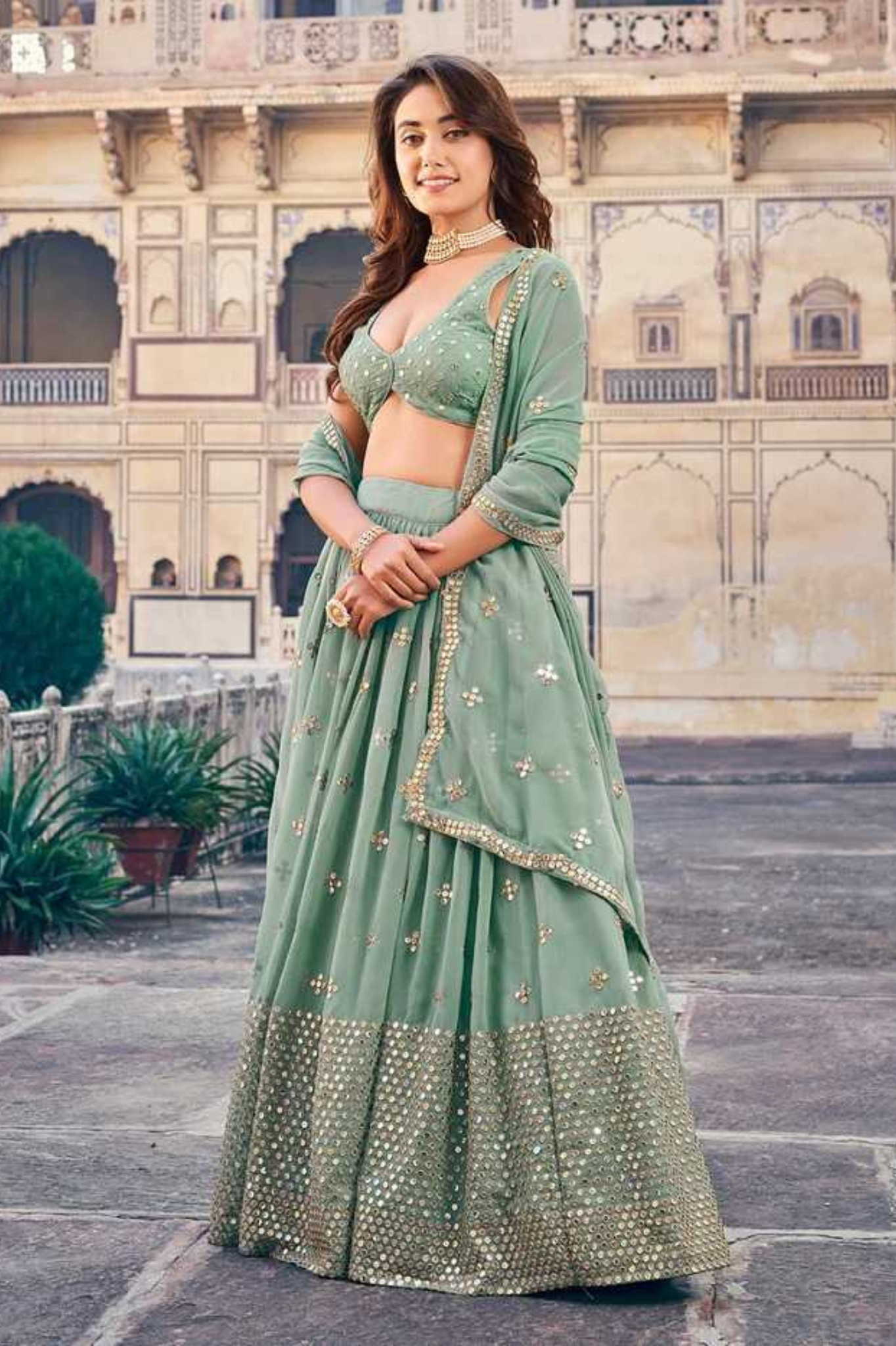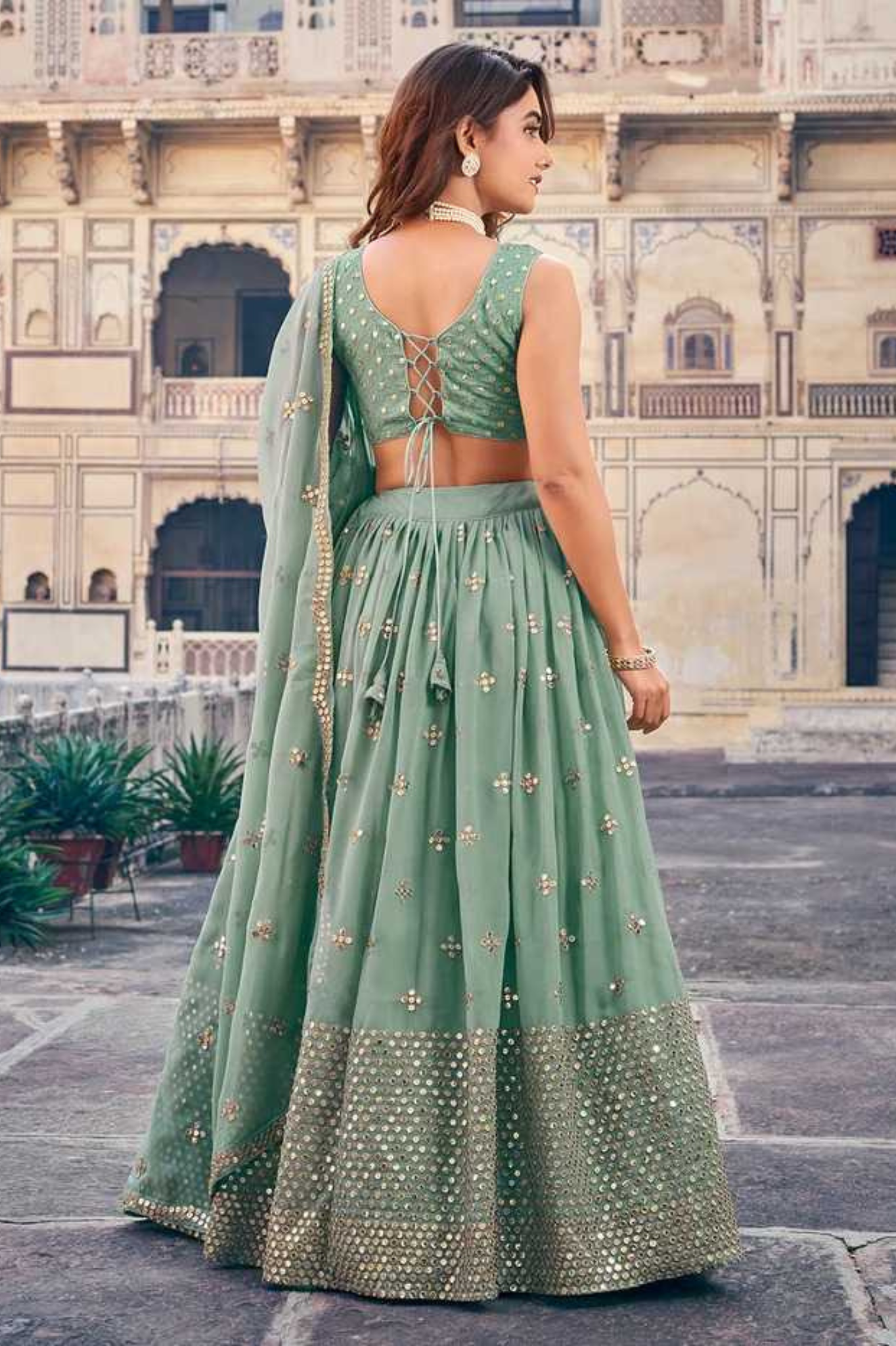 Pastel Green Georgette Lehenga with Matching Blouse & Dupatta