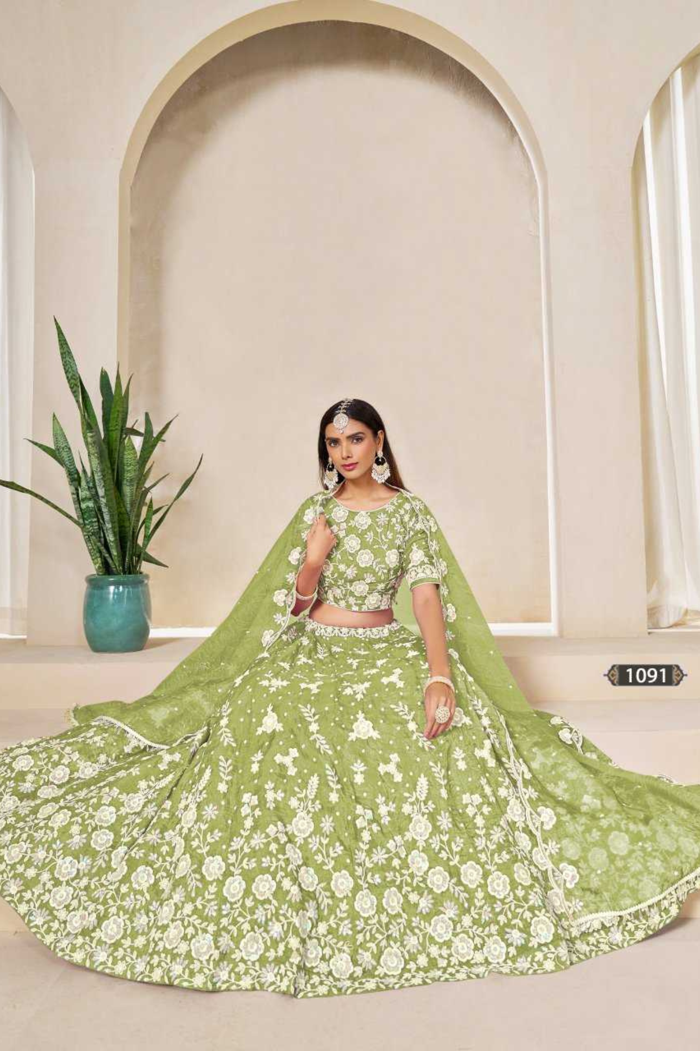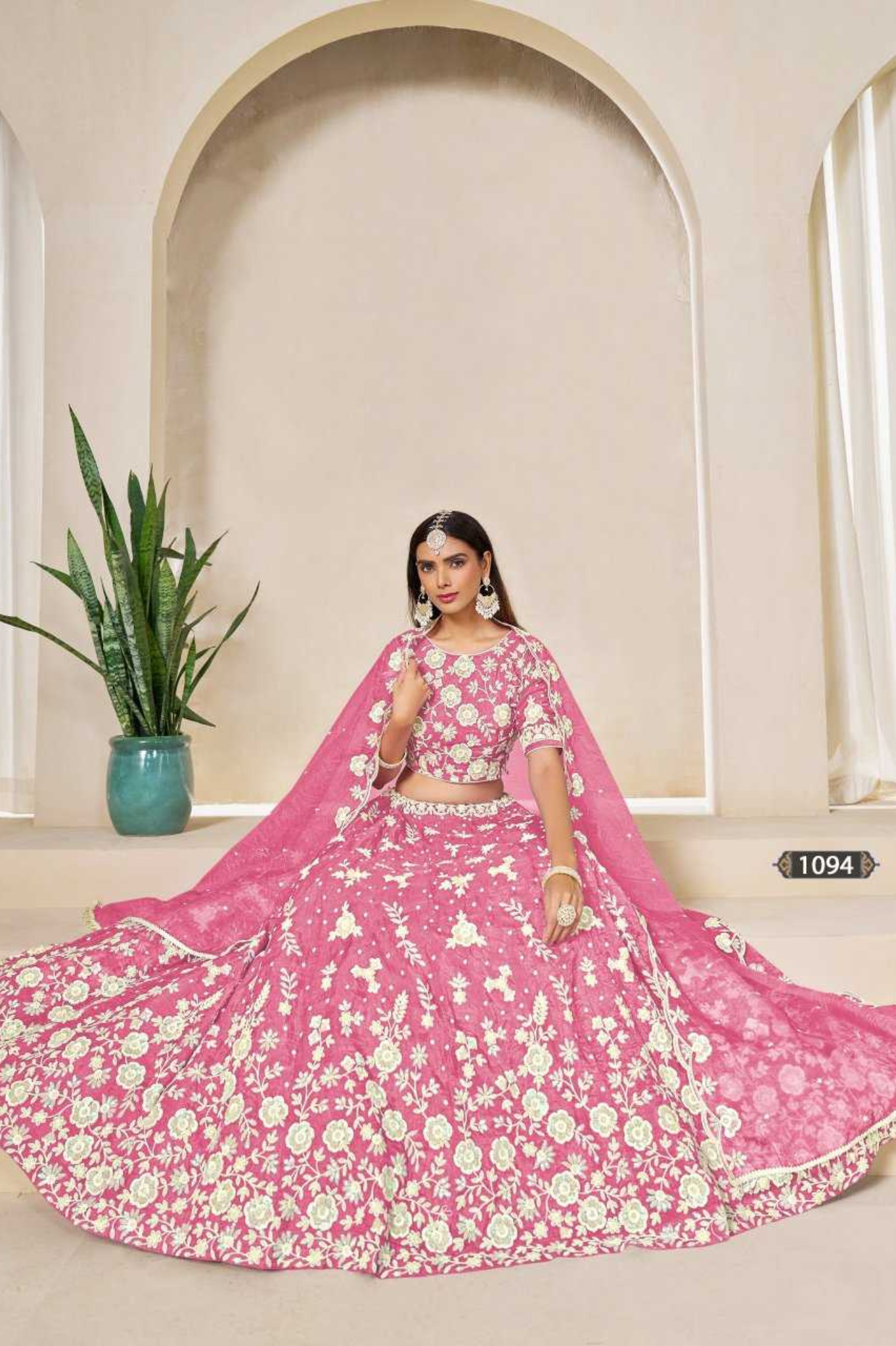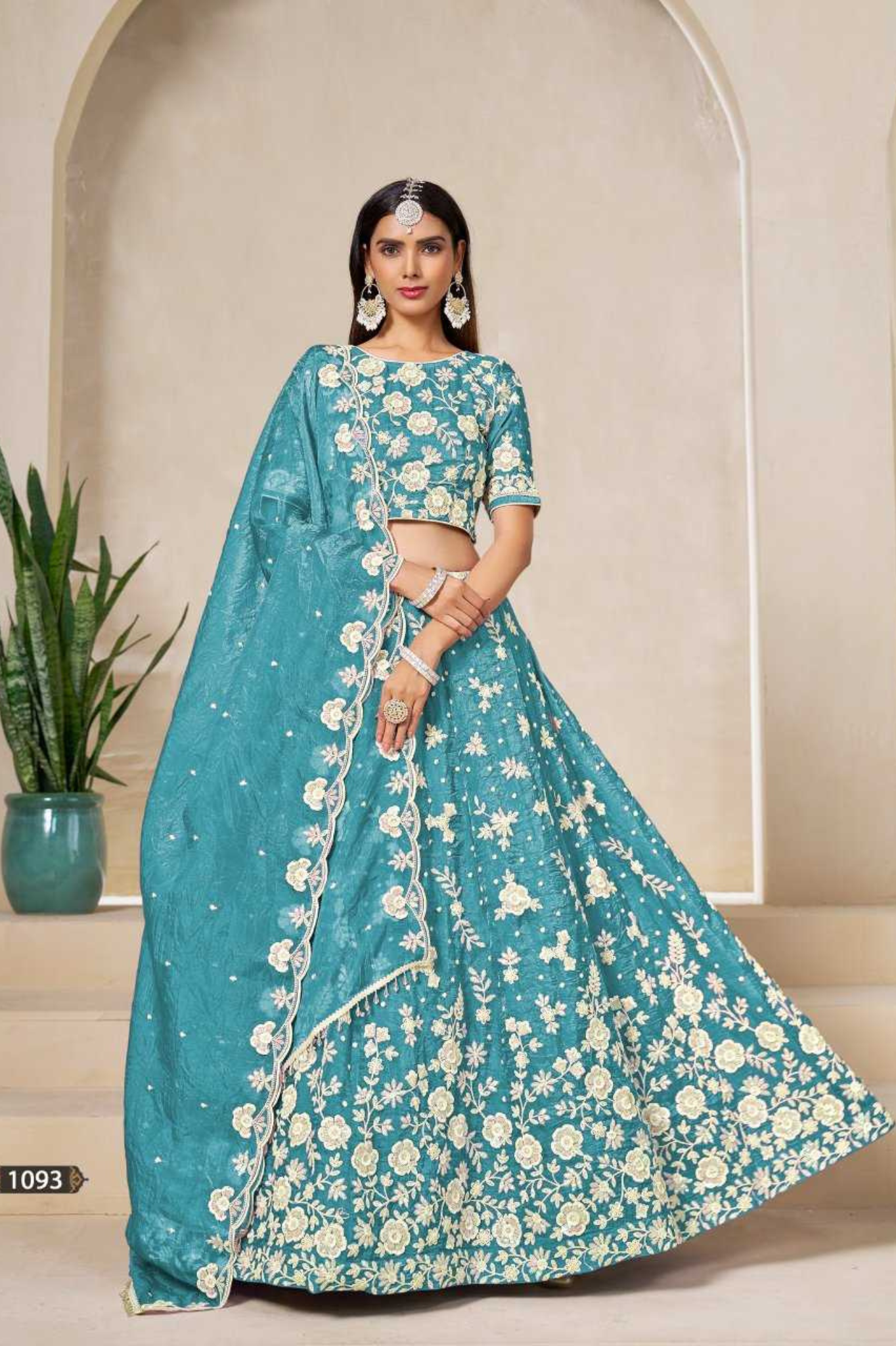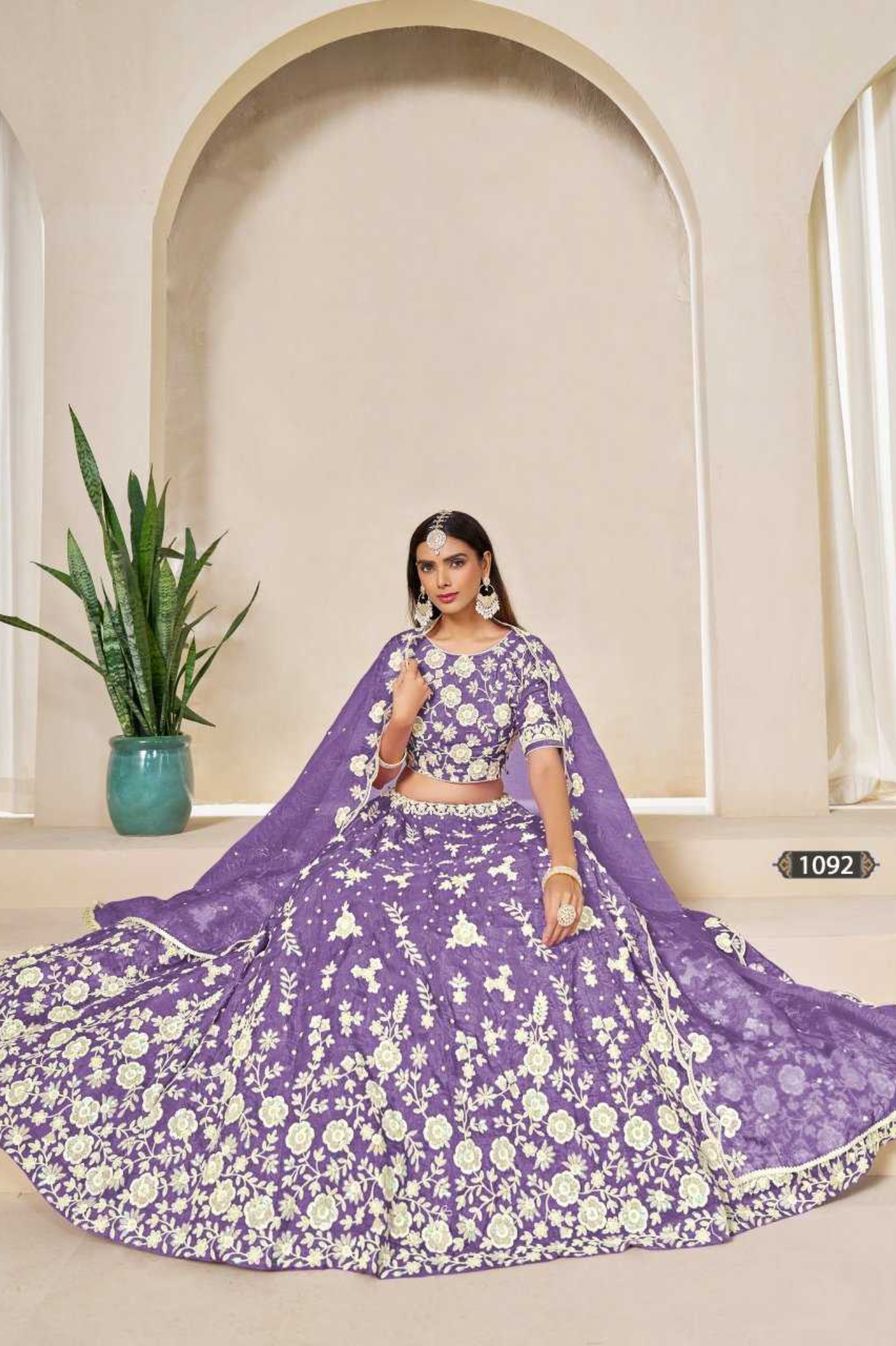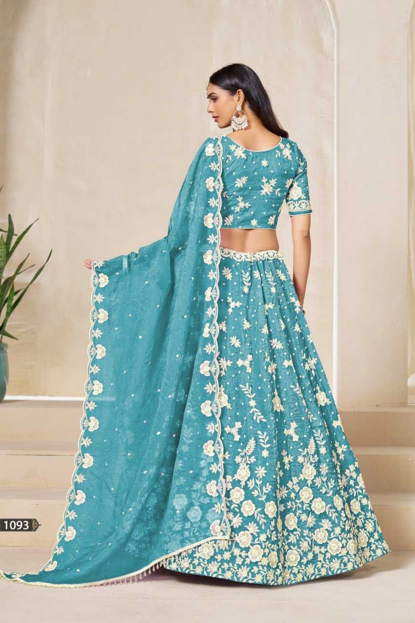 Step into timeless elegance with this Soft Crush Fil Organza Silk Lehenga, beautifully detailed with delicate embroidery work. The lightweight yet regal fabric flows effortlessly, making it a perfect choice for weddings, festive occasions, and grand celebrations.