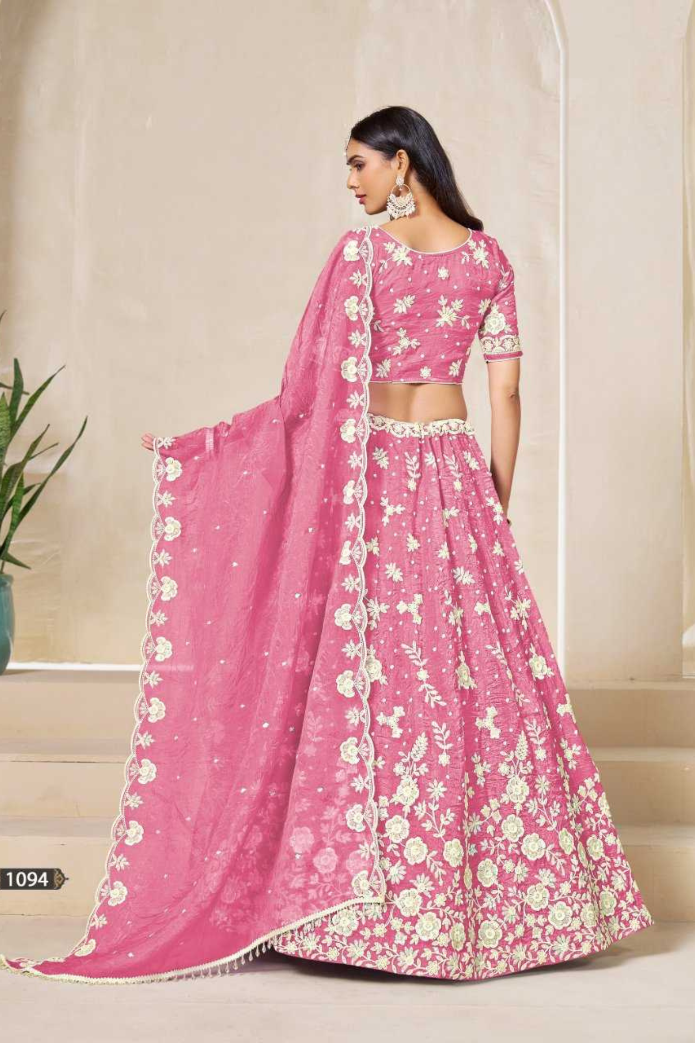 Step into timeless elegance with this Soft Crush Fil Organza Silk Lehenga, beautifully detailed with delicate embroidery work. The lightweight...