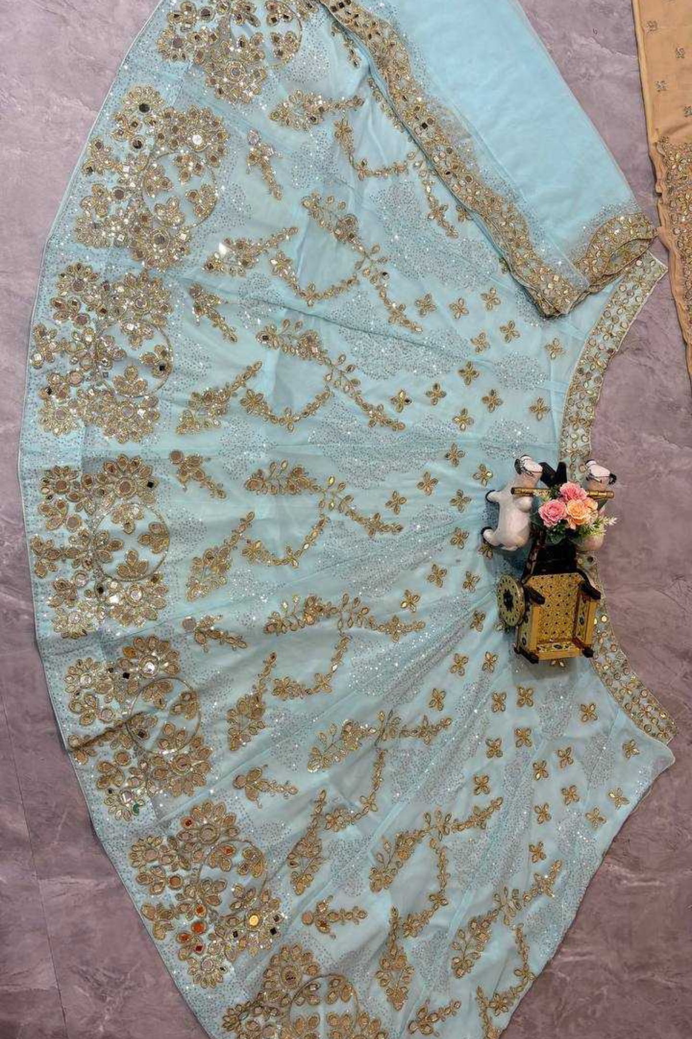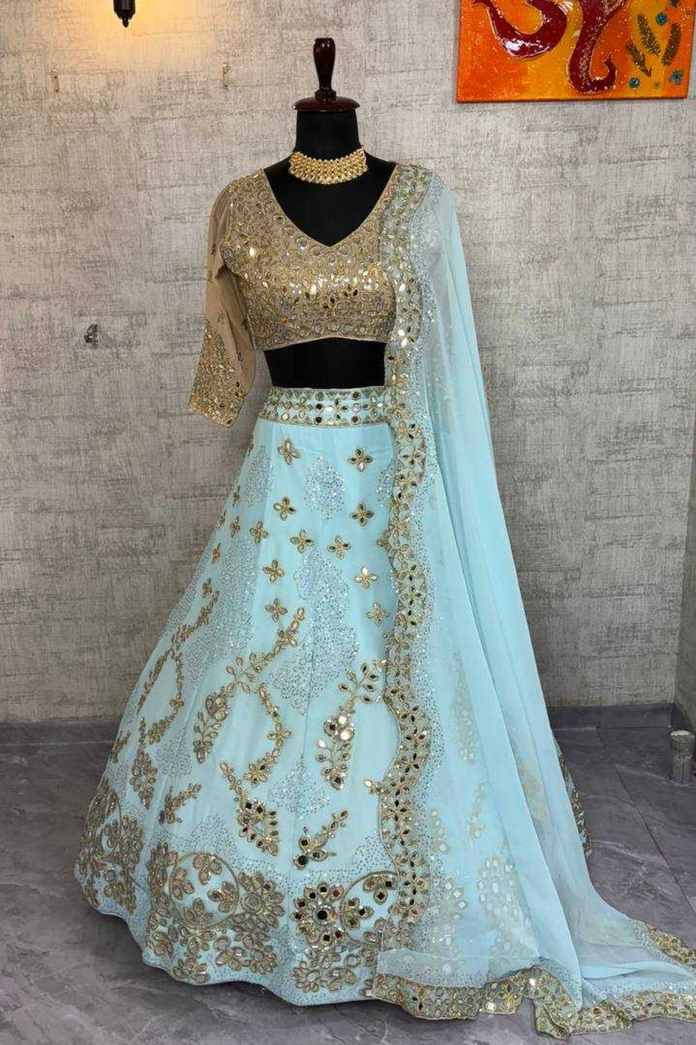 Celestial Aqua Blue Fox Georgette Mirror Work Lehenga