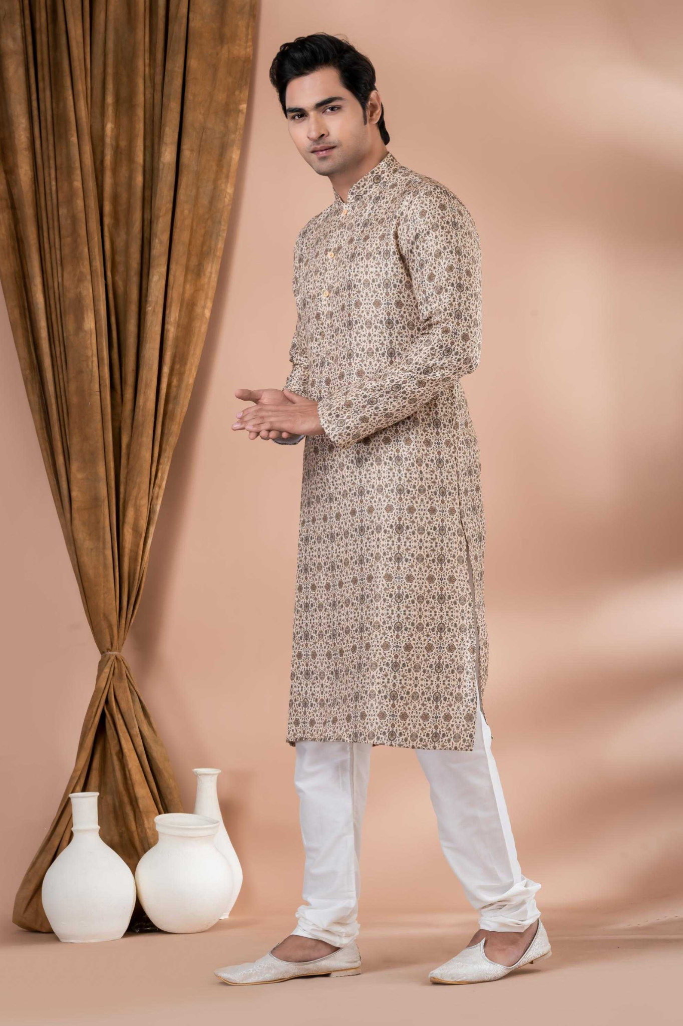 Step into effortless style with this men’s kurta made from heavy cotton printed fabric, designed for comfort and sophistication. Featuring an all-over subtle print, mandarin collar, and premium stitched finish, this kurta pairs perfectly with the white pajama for a refined festive look. Ideal for family gatherings, cultural functions, and celebrations.