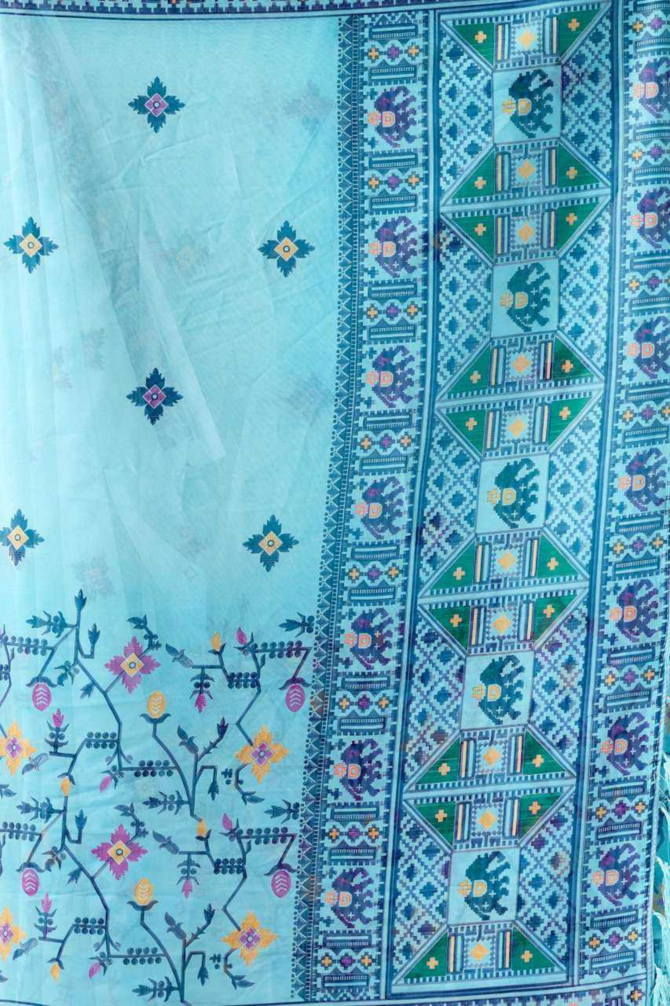 An epitome of modern elegance and timeless tradition, this Soft Georgette Saree in blue features intricate multicolor geometric digital prints and a finely crafted contrast border. The tassel-finished pallu adds a touch of bohemian sophistication, making it perfect for festive events and classy gatherings alike.
