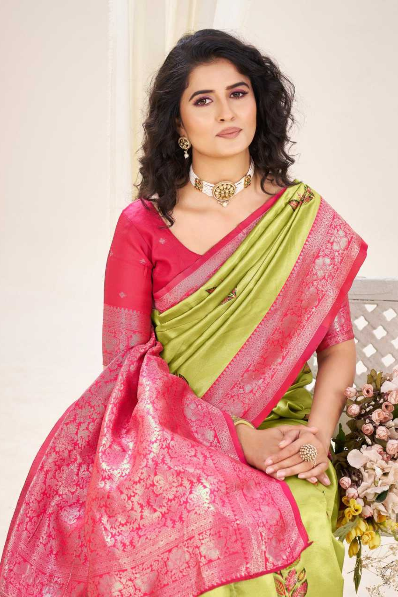 Color: Lime Green with Rich Pink & Golden Zari Border