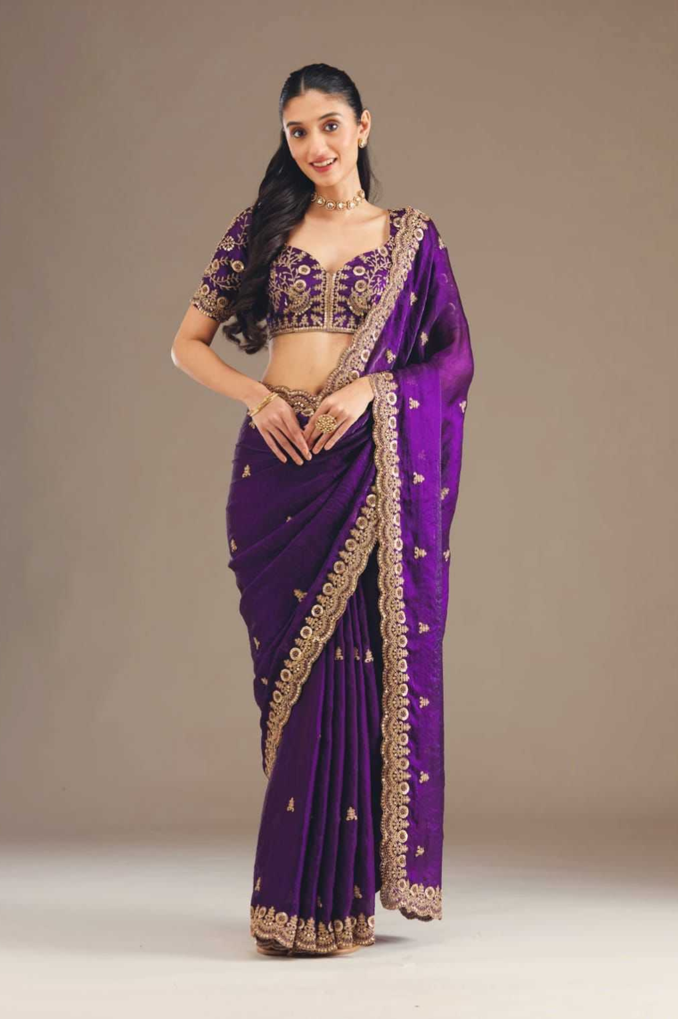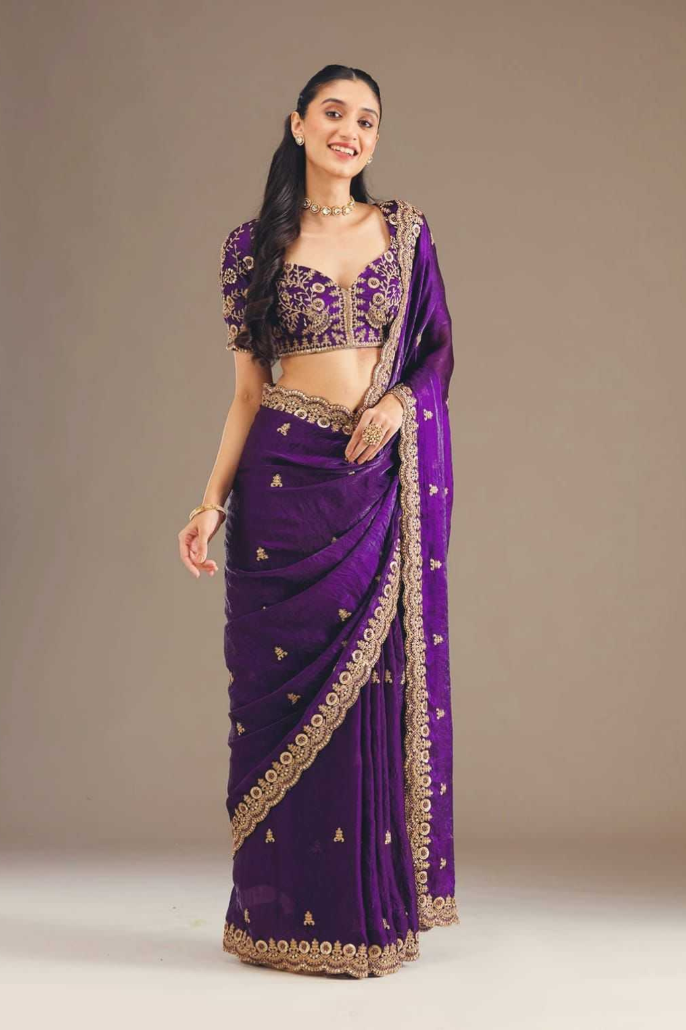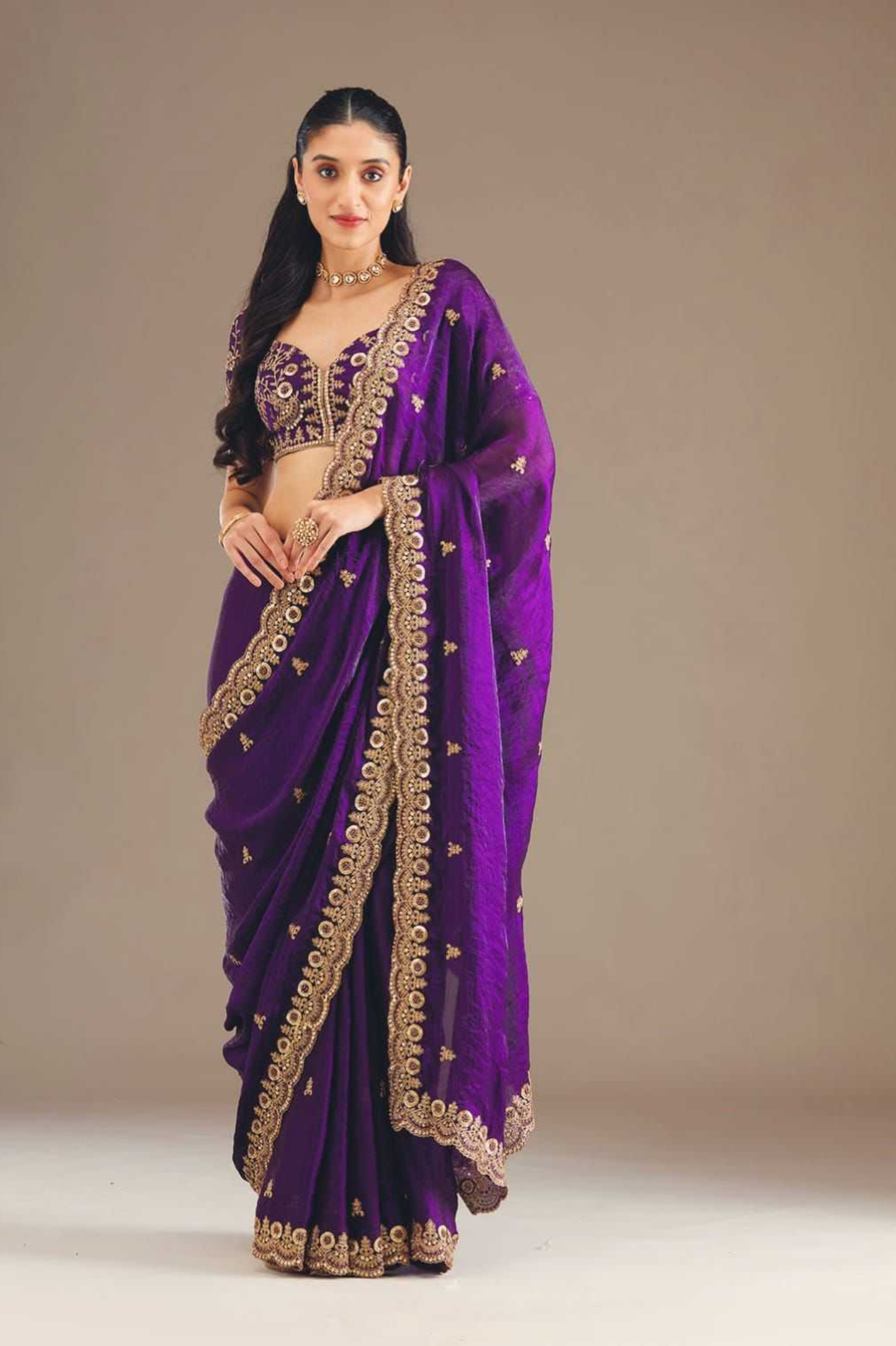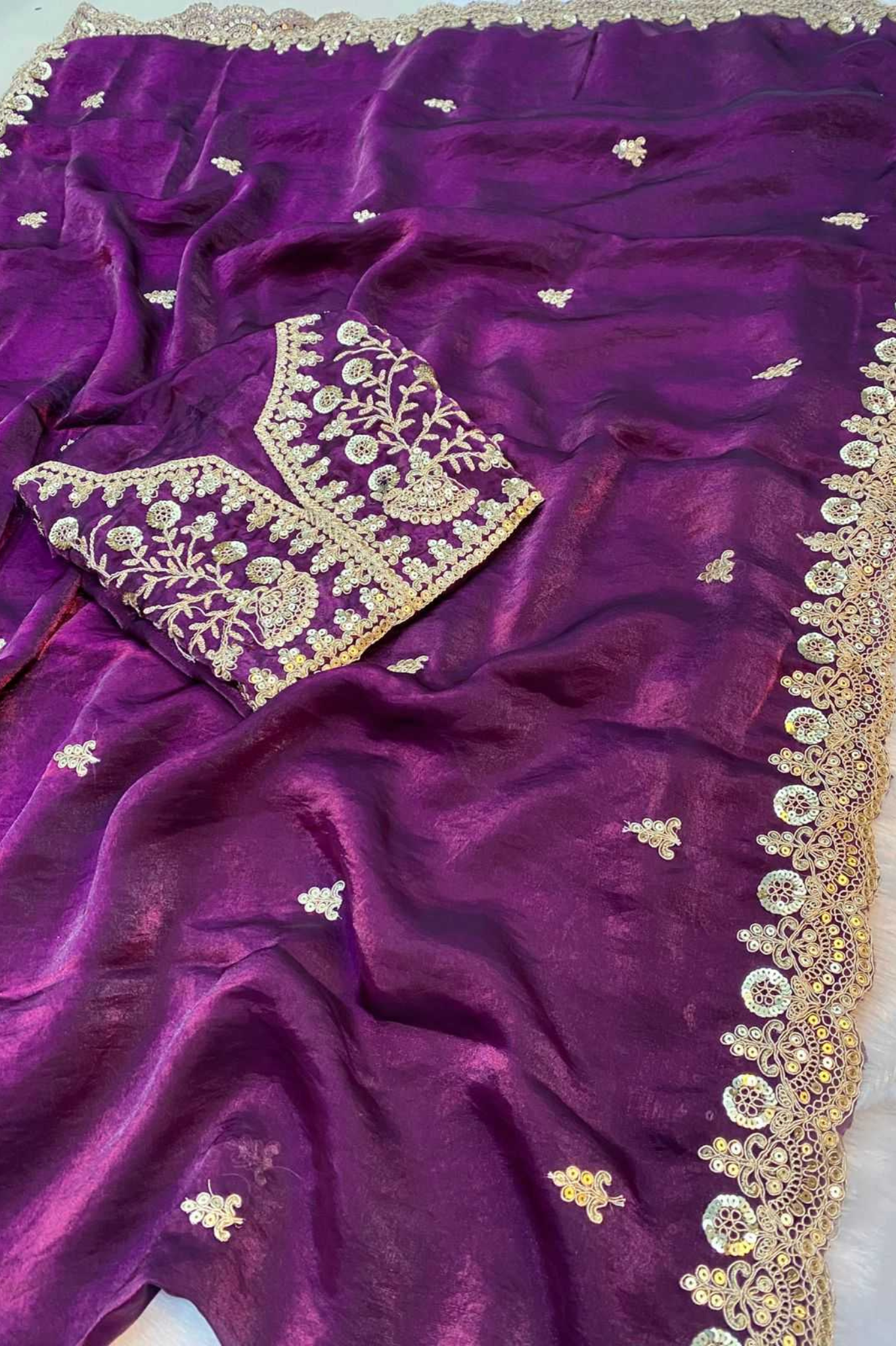 Royal Purple Fandy Chiffon Saree with Heavy Embroidery and Sequin Work