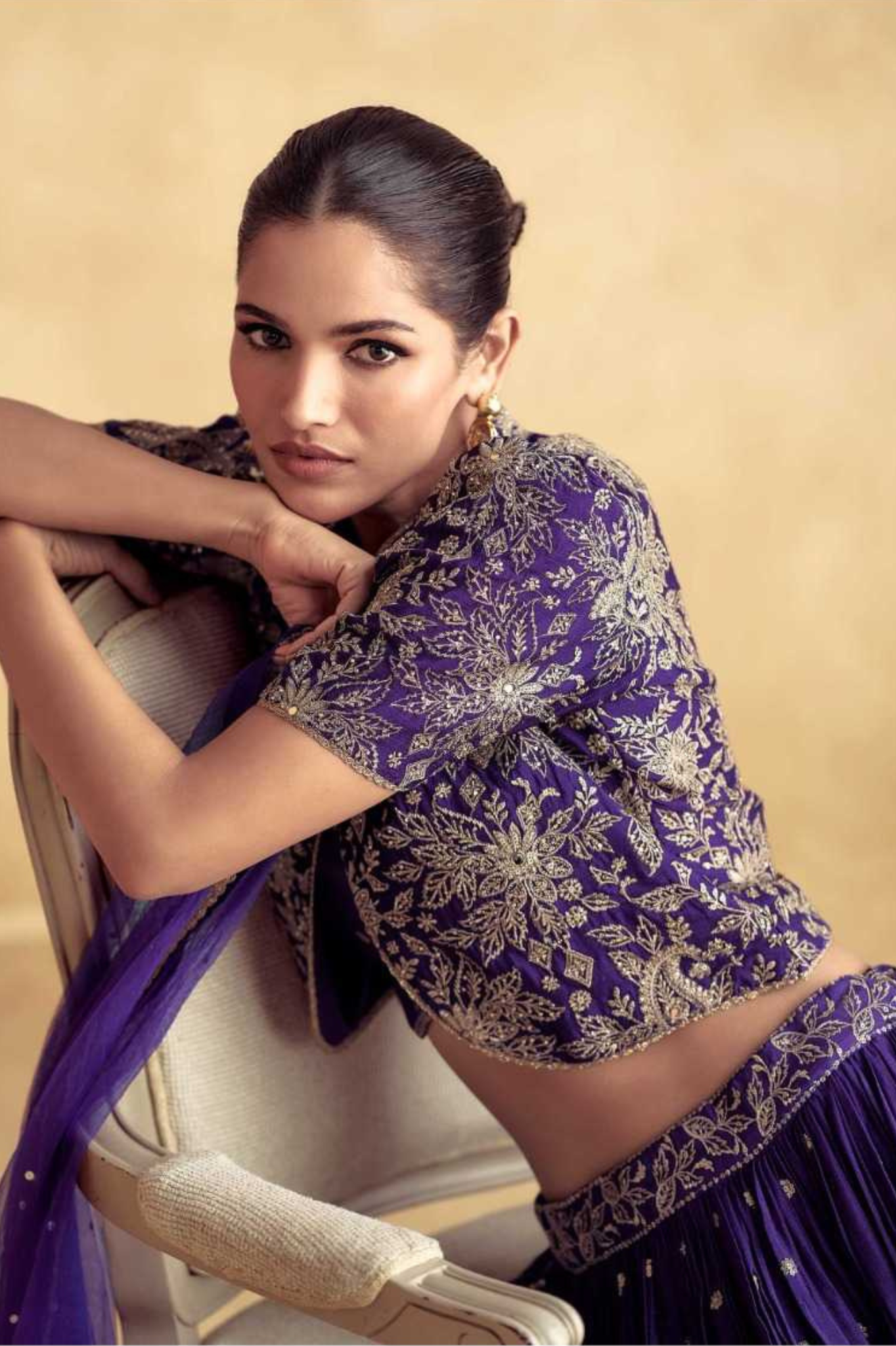 Designed for timeless elegance, this stunning violet lehenga set blends traditional charm with a modern Indo-Western silhouette. The top is crafted in Premium Chinon and Real Georgette, offering a luxurious fall and flattering drape. The free-size stitched jacket-style top features intricate embroidery and premium finishing, adding an elevated designer touch that makes this outfit perfect for weddings, receptions, festive parties, and premium celebrations.