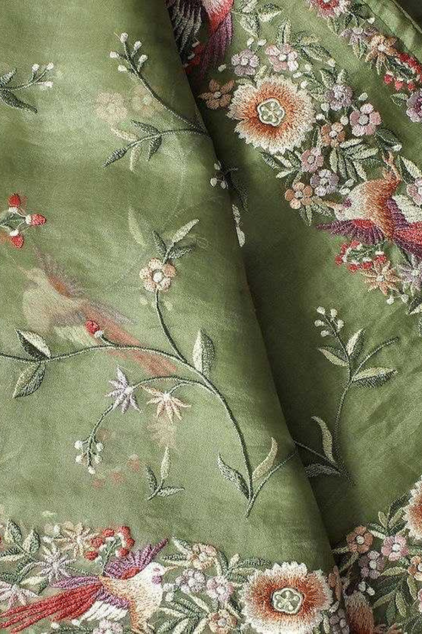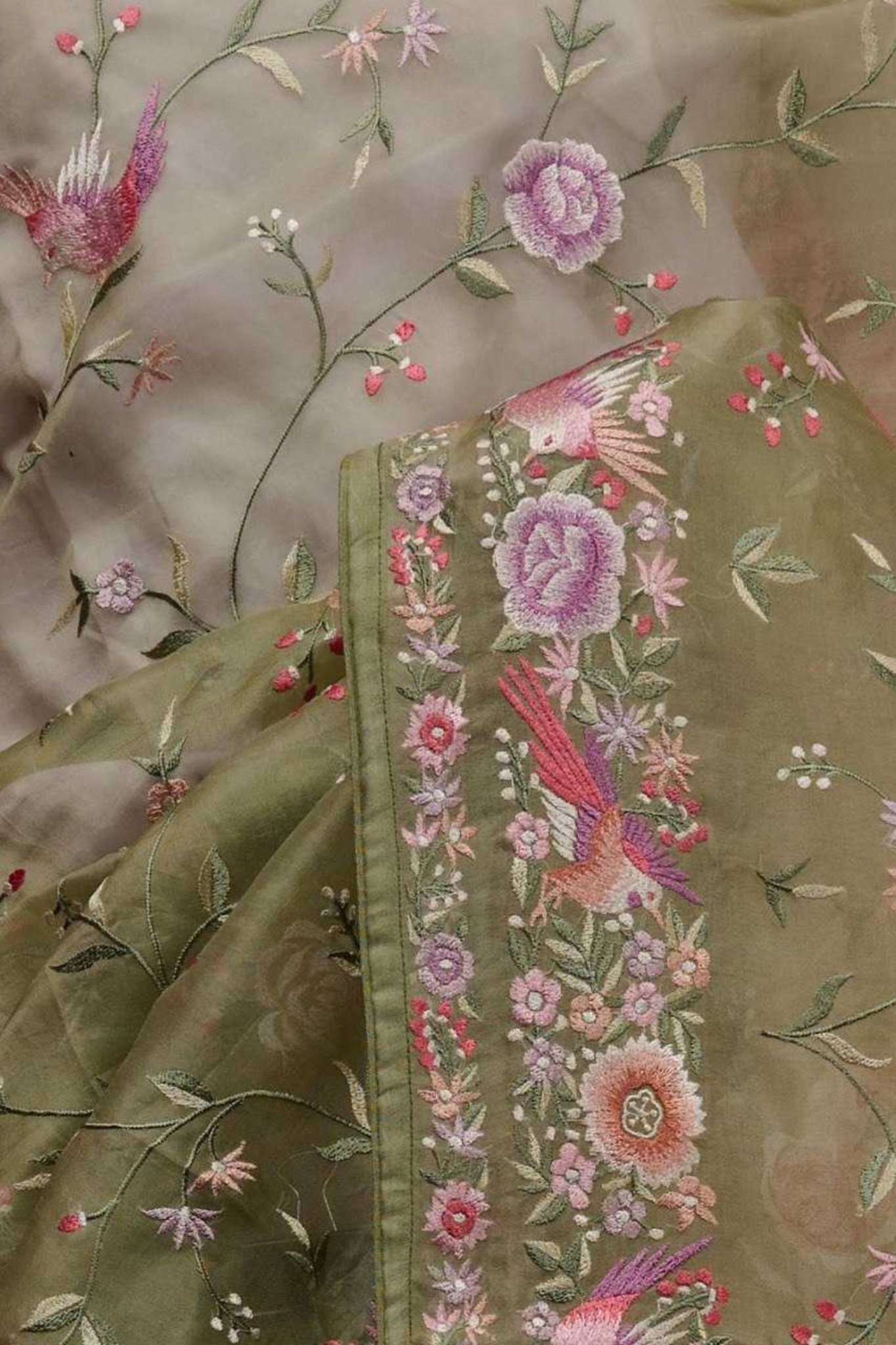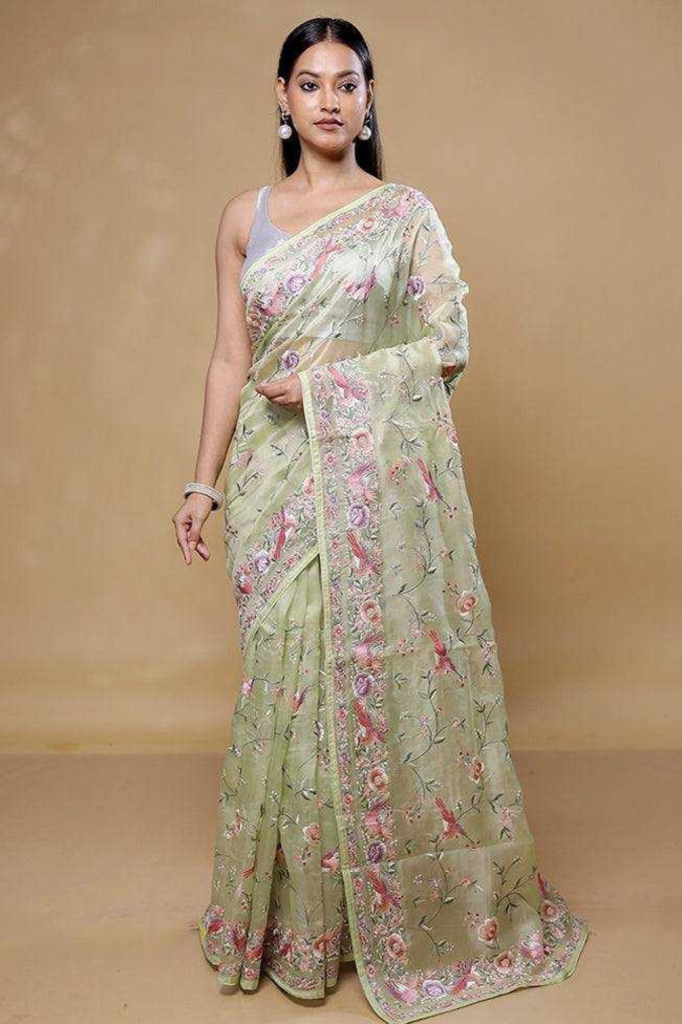 Pista Green Heavy Organza Silk Saree with Multi Thread Embroidery Work