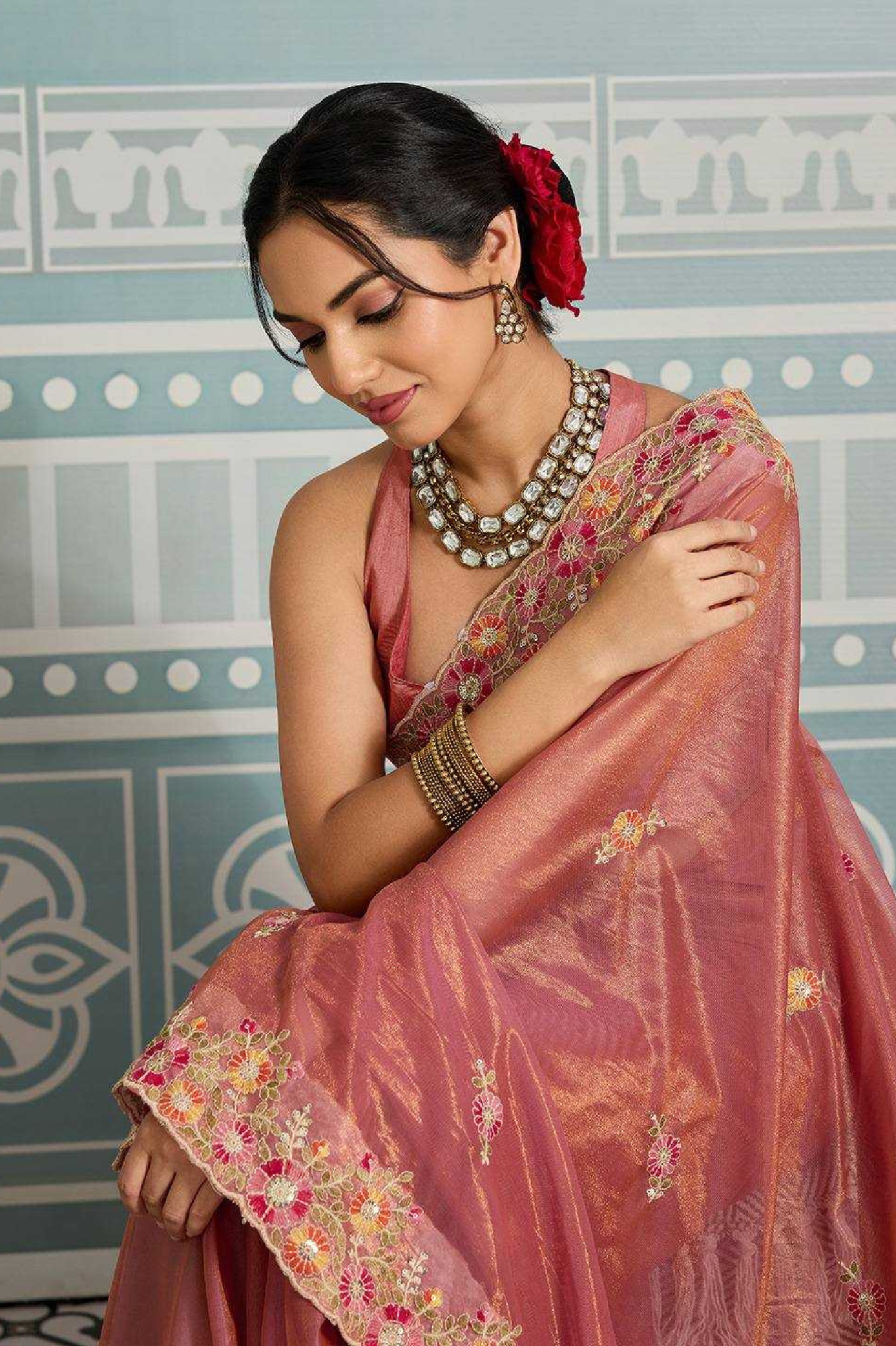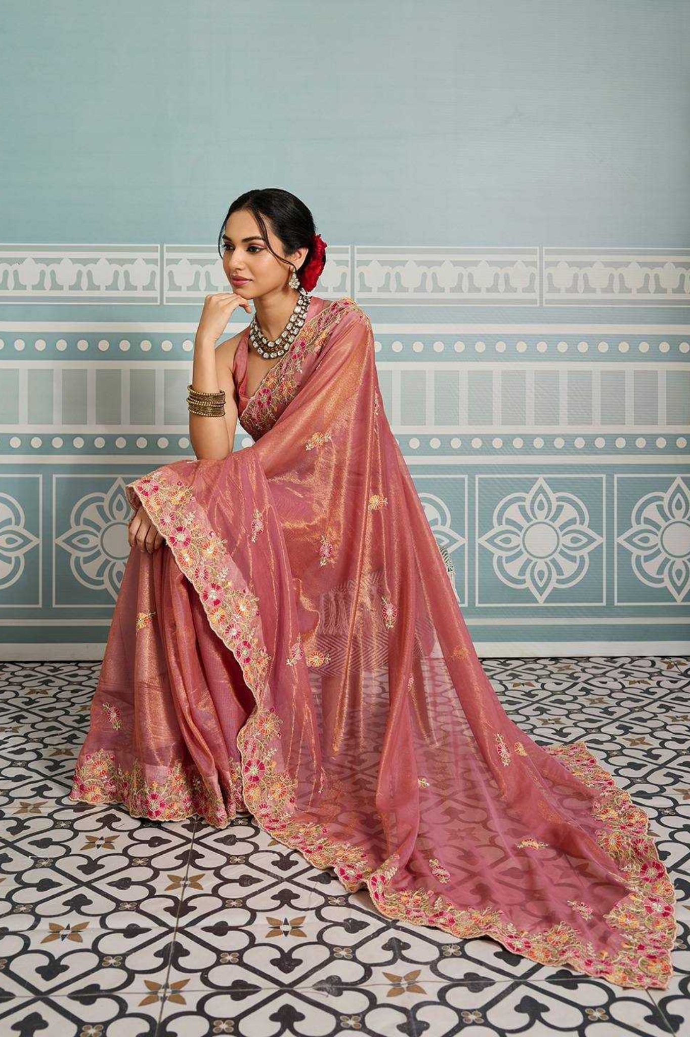 Light as air, lovely as a dream. Embrace effortless elegance with our Chiffon Saree, featuring floral prints kissed with a dainty pearl lace border. Whether it’s a festive brunch or a graceful evening look, this saree lets you float through the moment in soft...