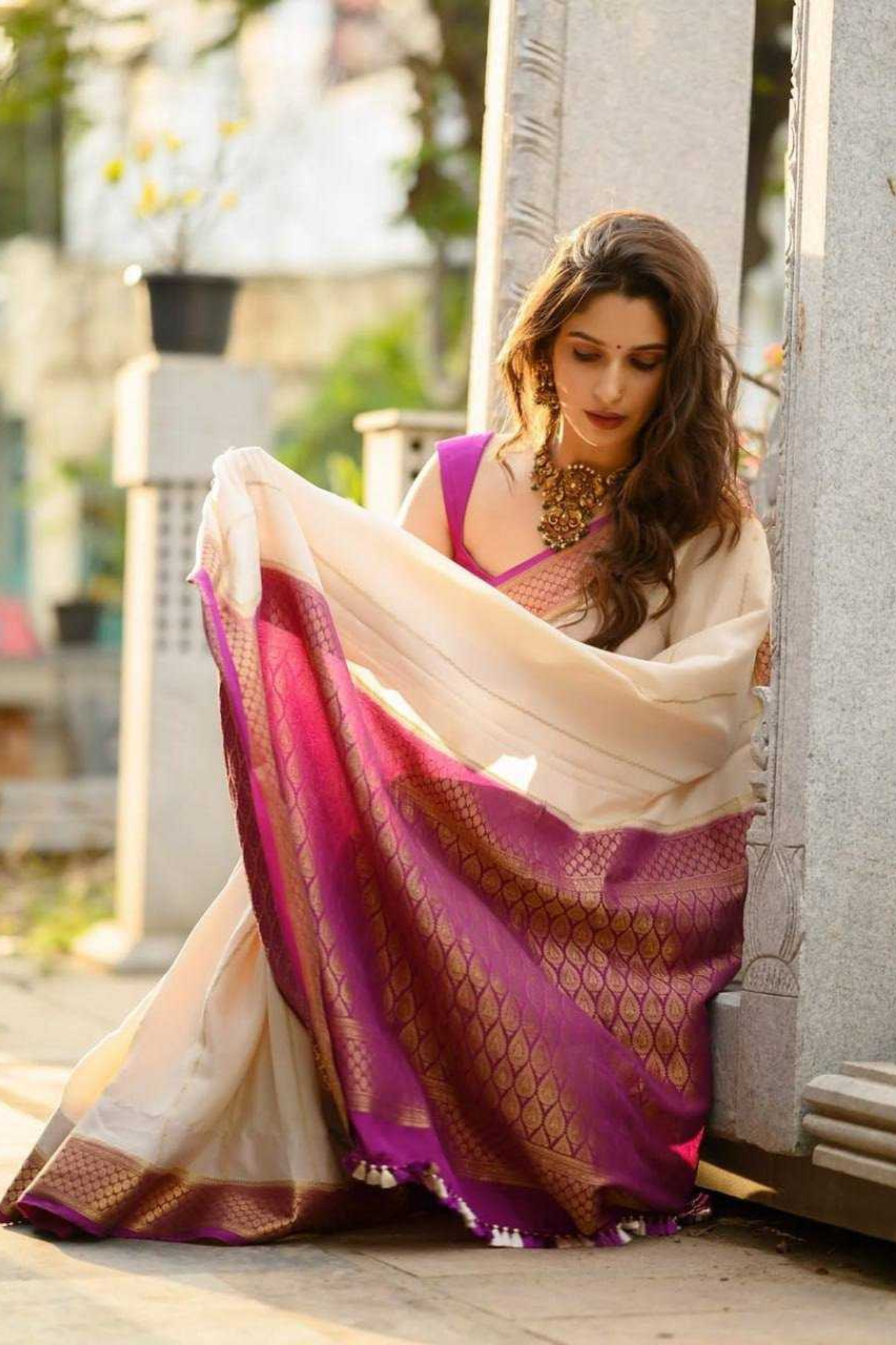 Elevate your traditional charm with this Soft Lichi Silk Saree, featuring a richly woven jacquard design across the body and a beautifully detailed pallu with traditional motifs. The soft silk fabric offers a luxurious drape and timeless appeal, making it an ideal choice for festive occasions, weddings, or elegant gatherings. The saree comes paired with a contrast jacquard border blouse, adding a regal finishing touch.