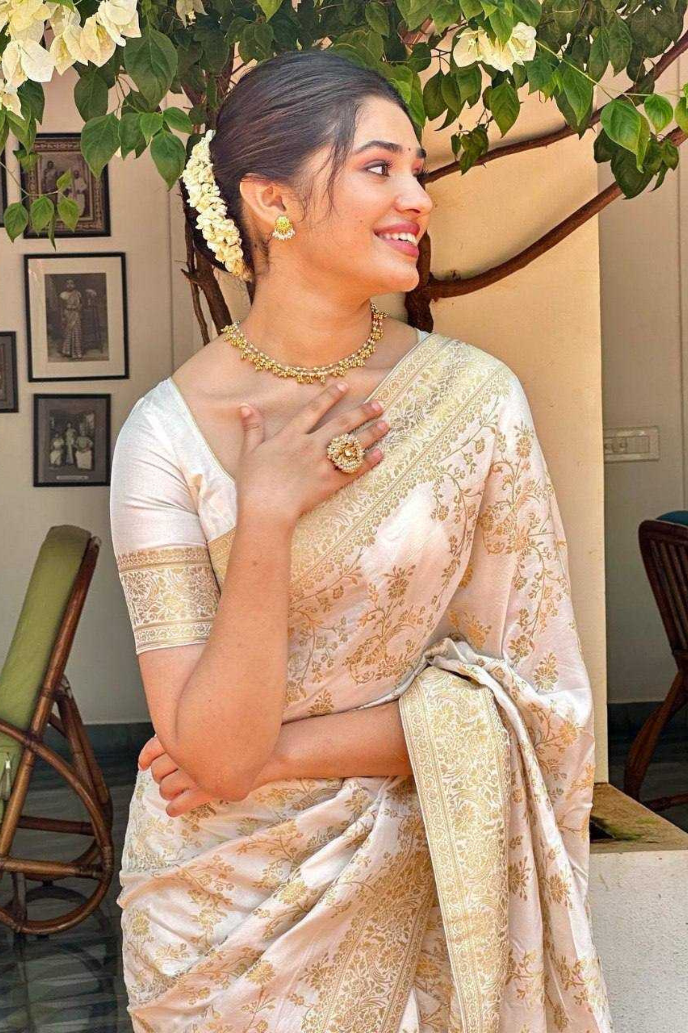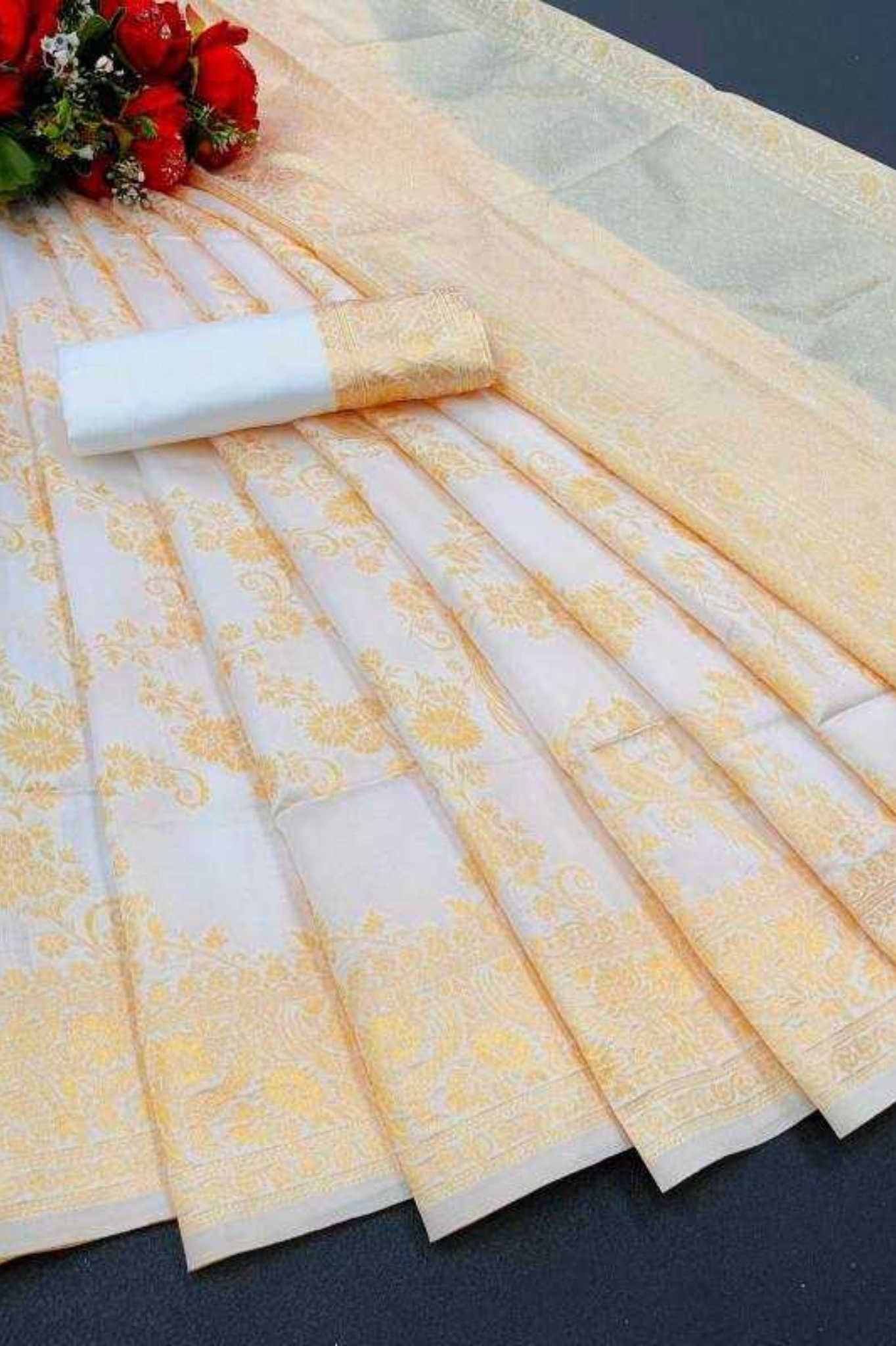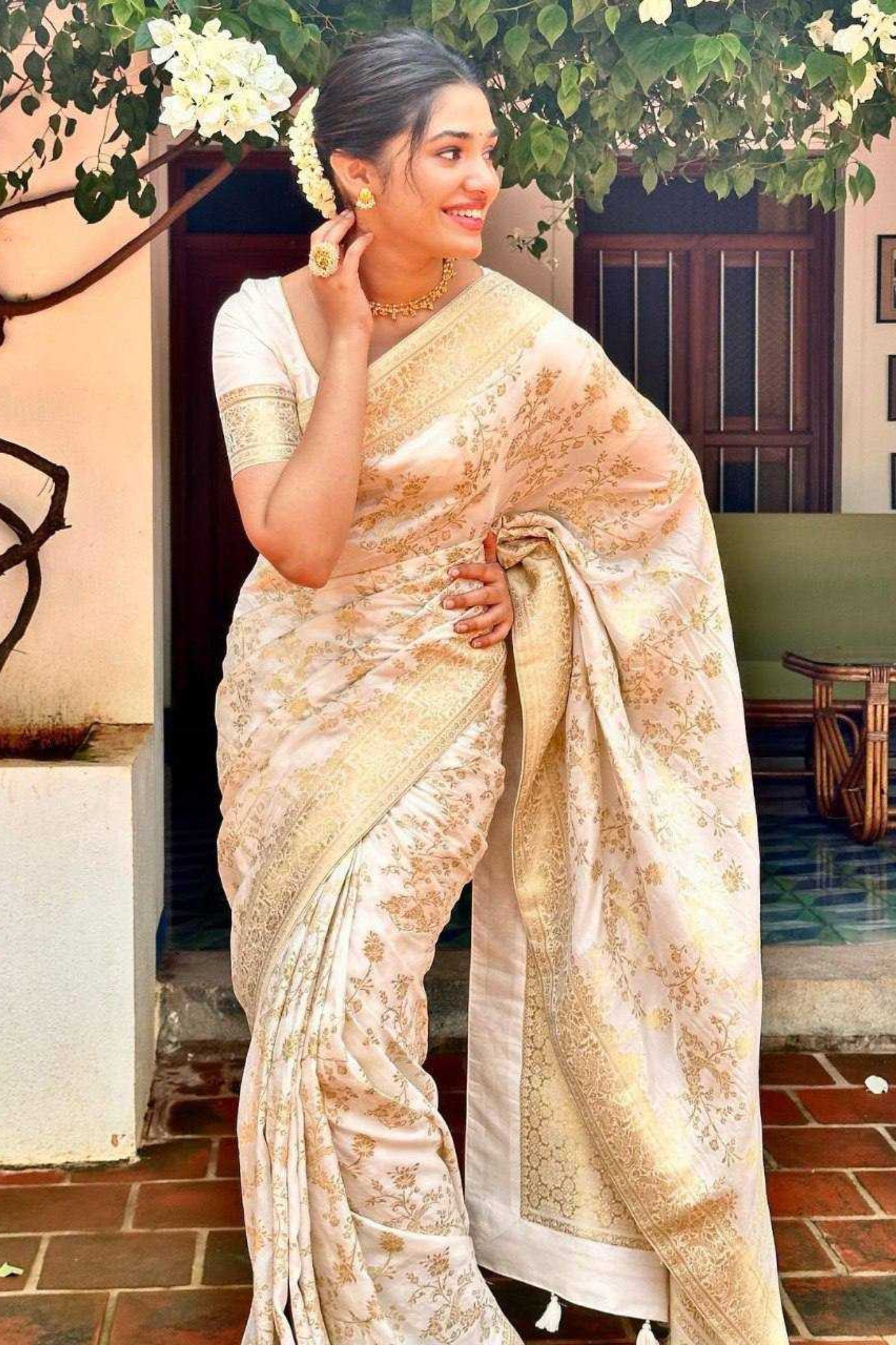 Soft Lichi Silk Cream Saree with Elegant Jacquard Weave