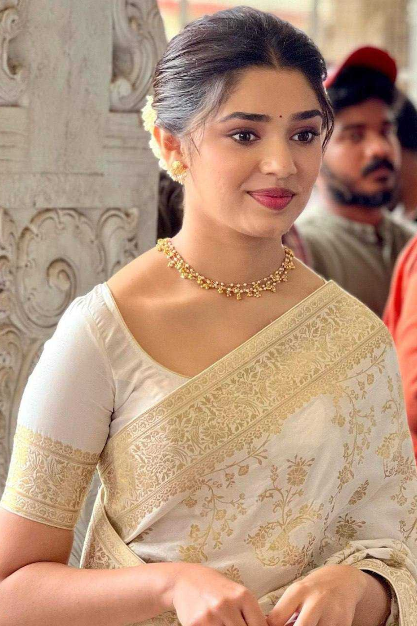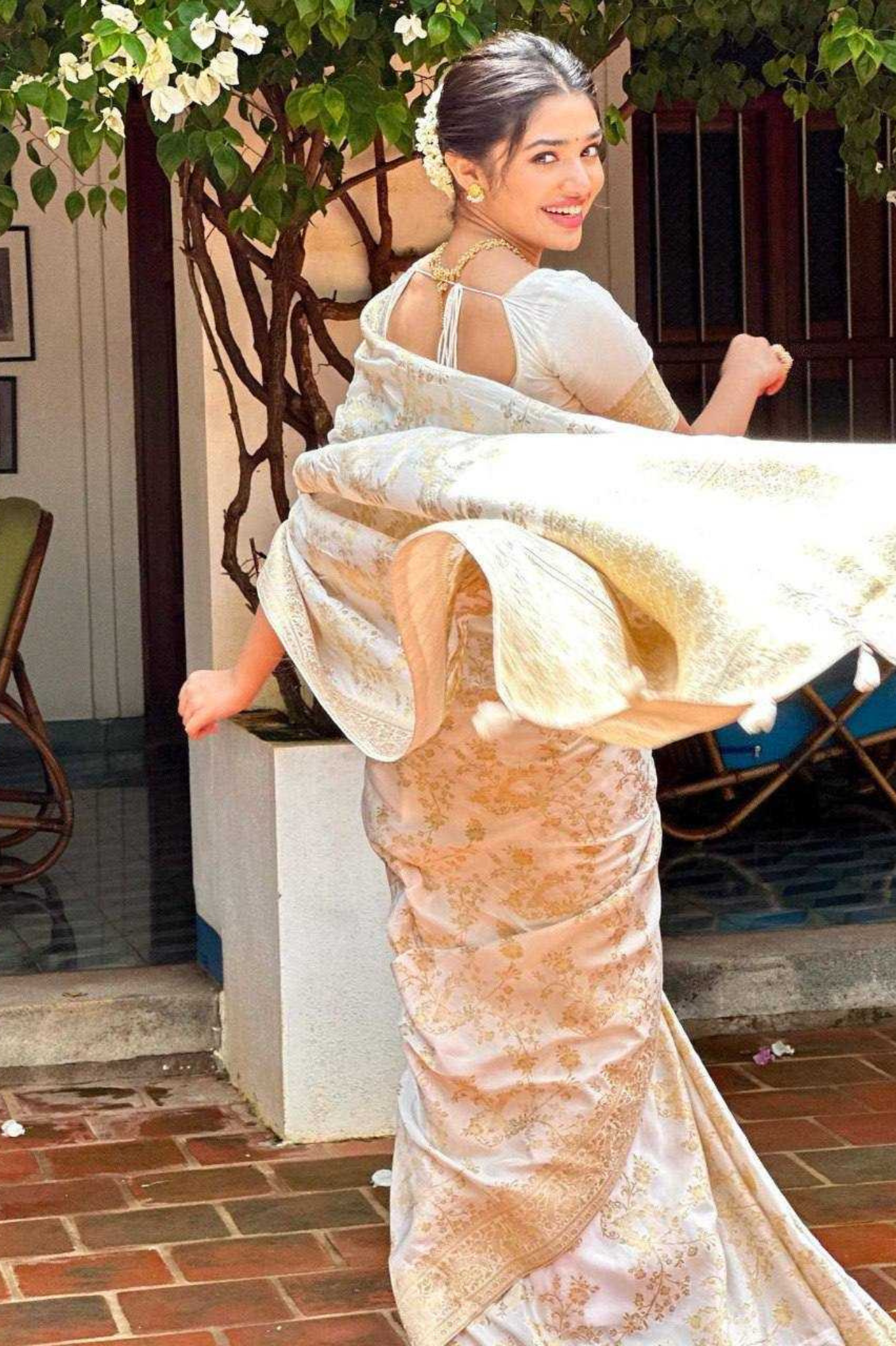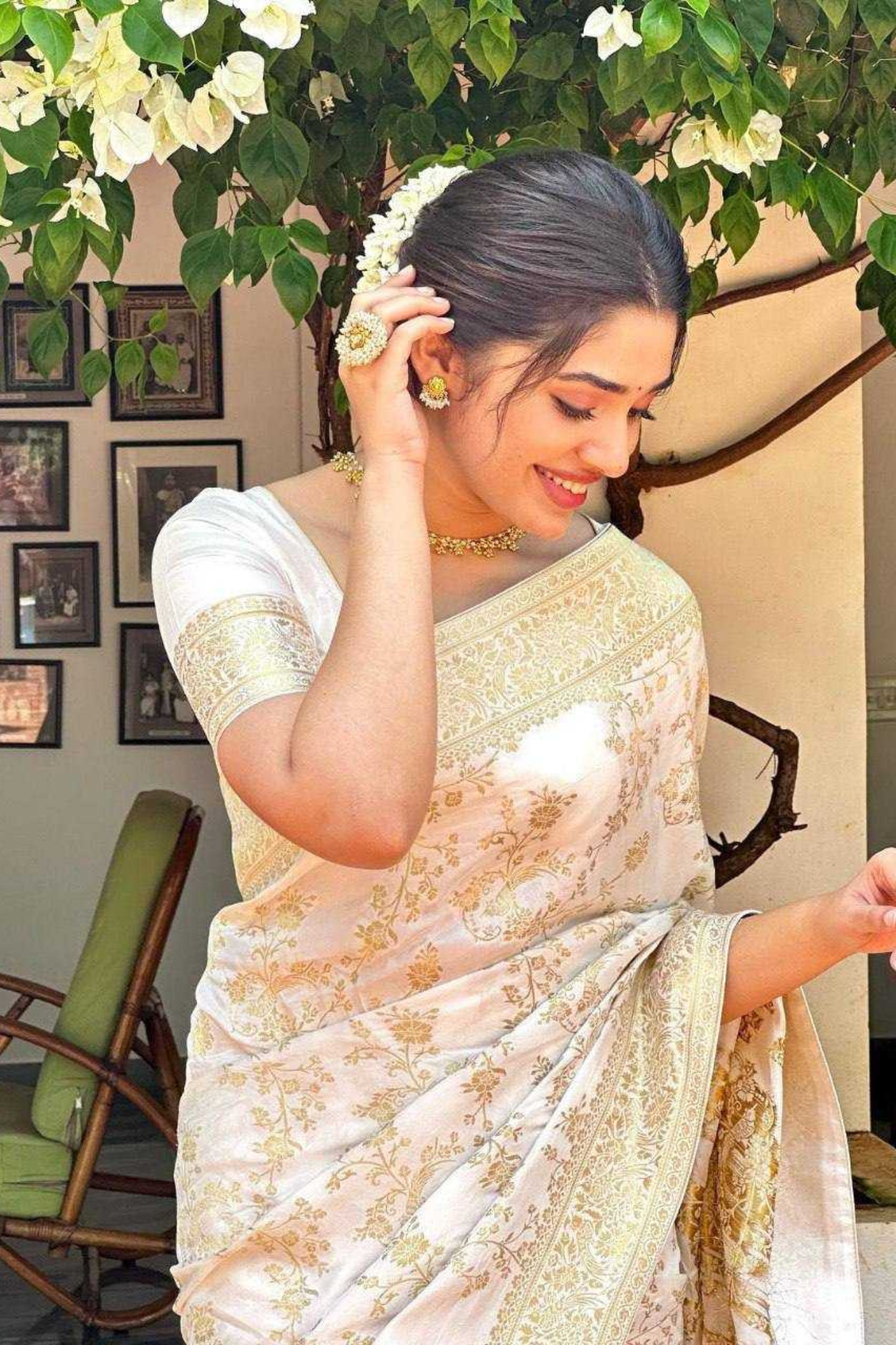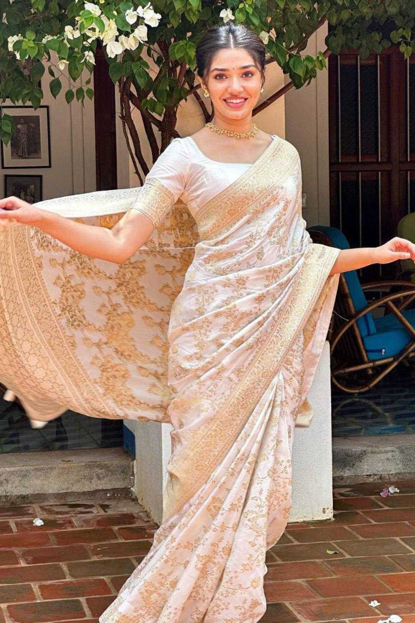 Soft Lichi Silk Cream Saree with Elegant Jacquard Weave