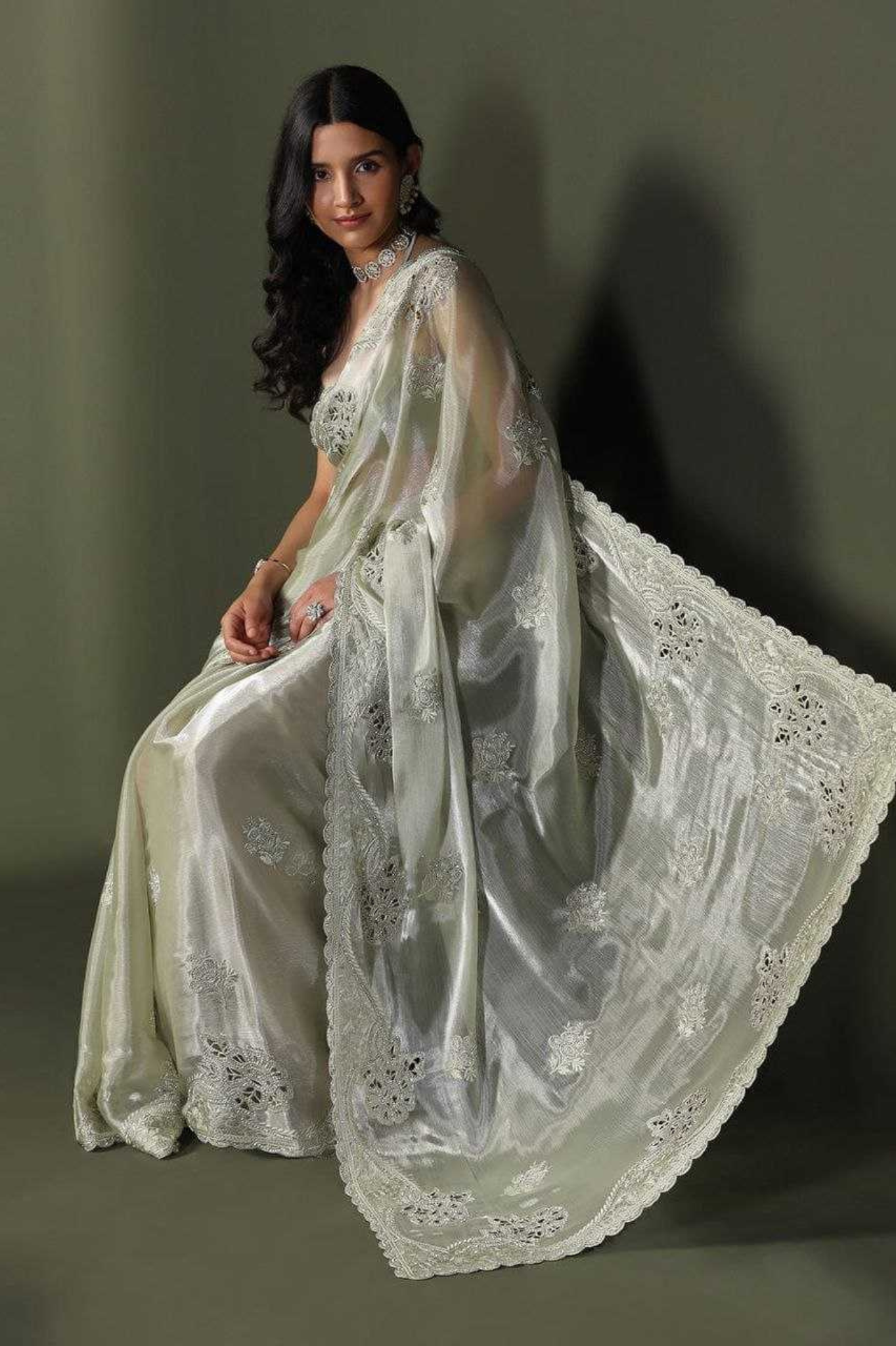 Elegant Soft Chiffon Silk Saree with Designer Cutwork