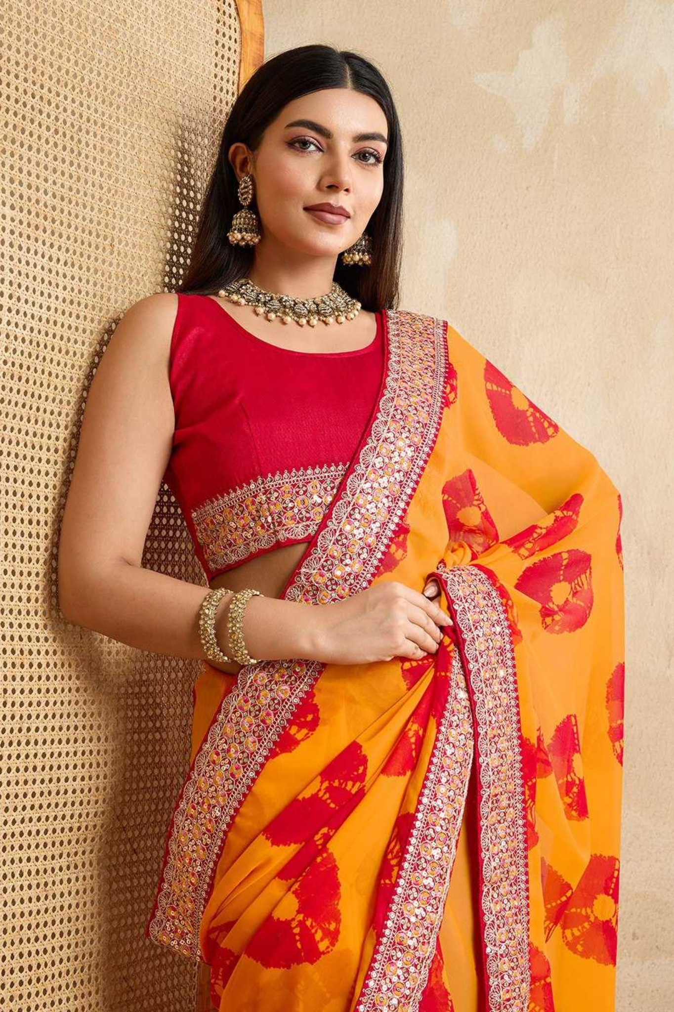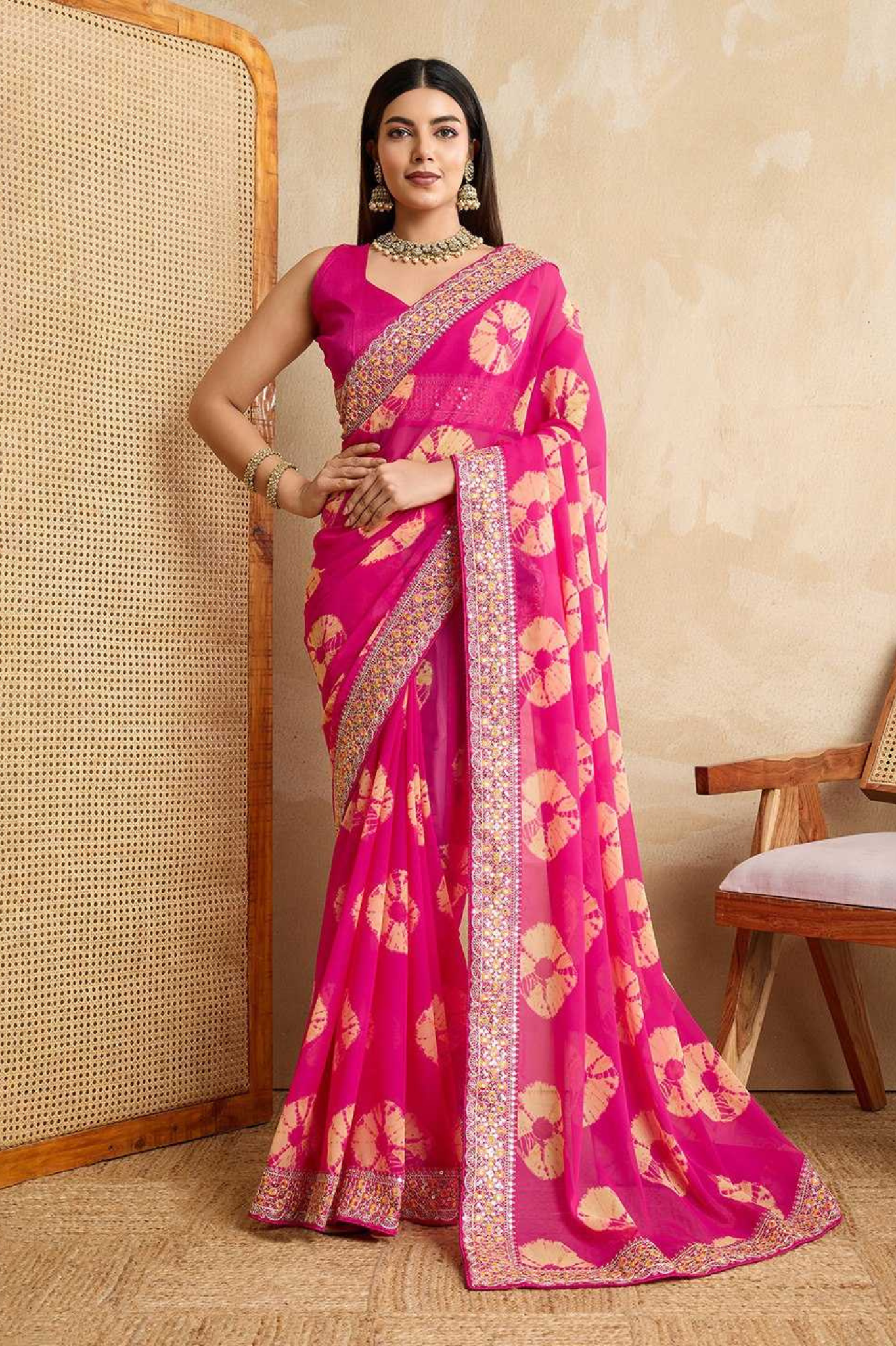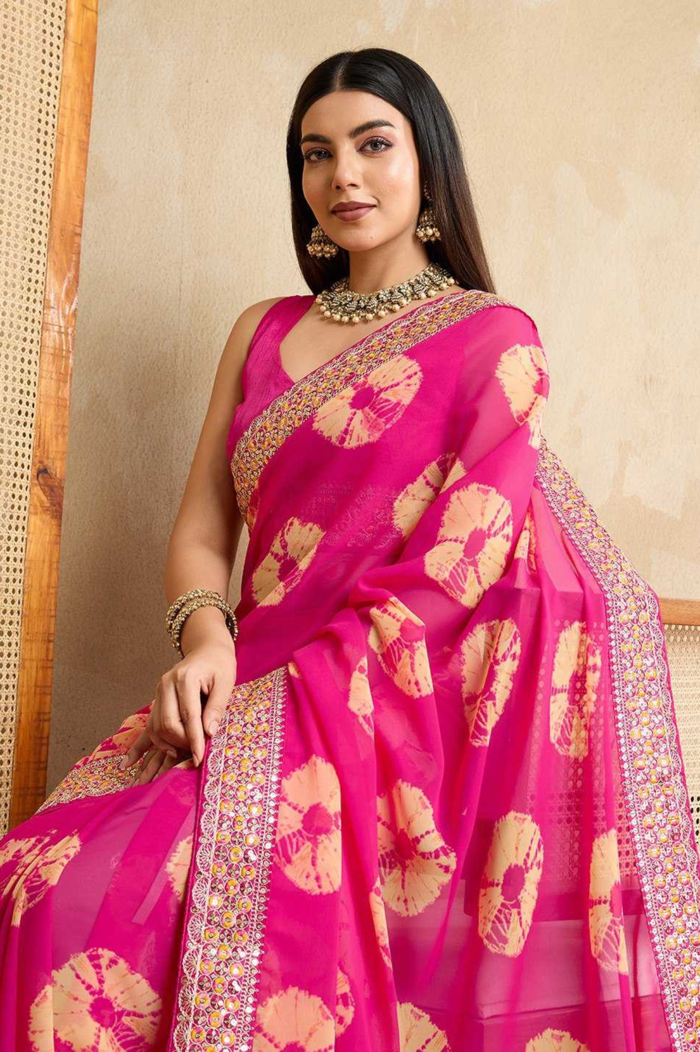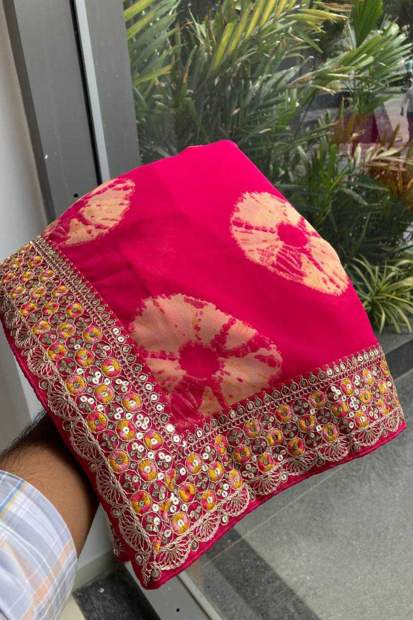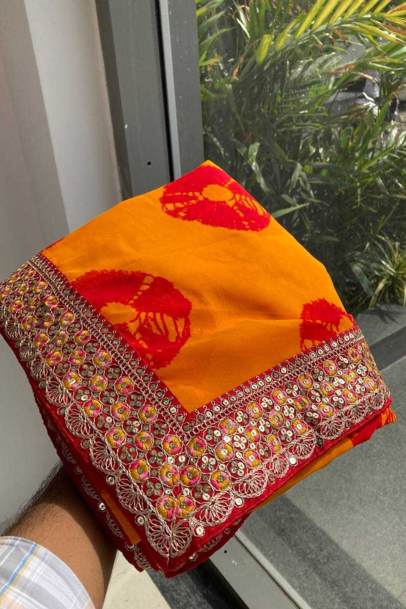 Bandhej Georgette Saree with Multi Embroidery Lace Border