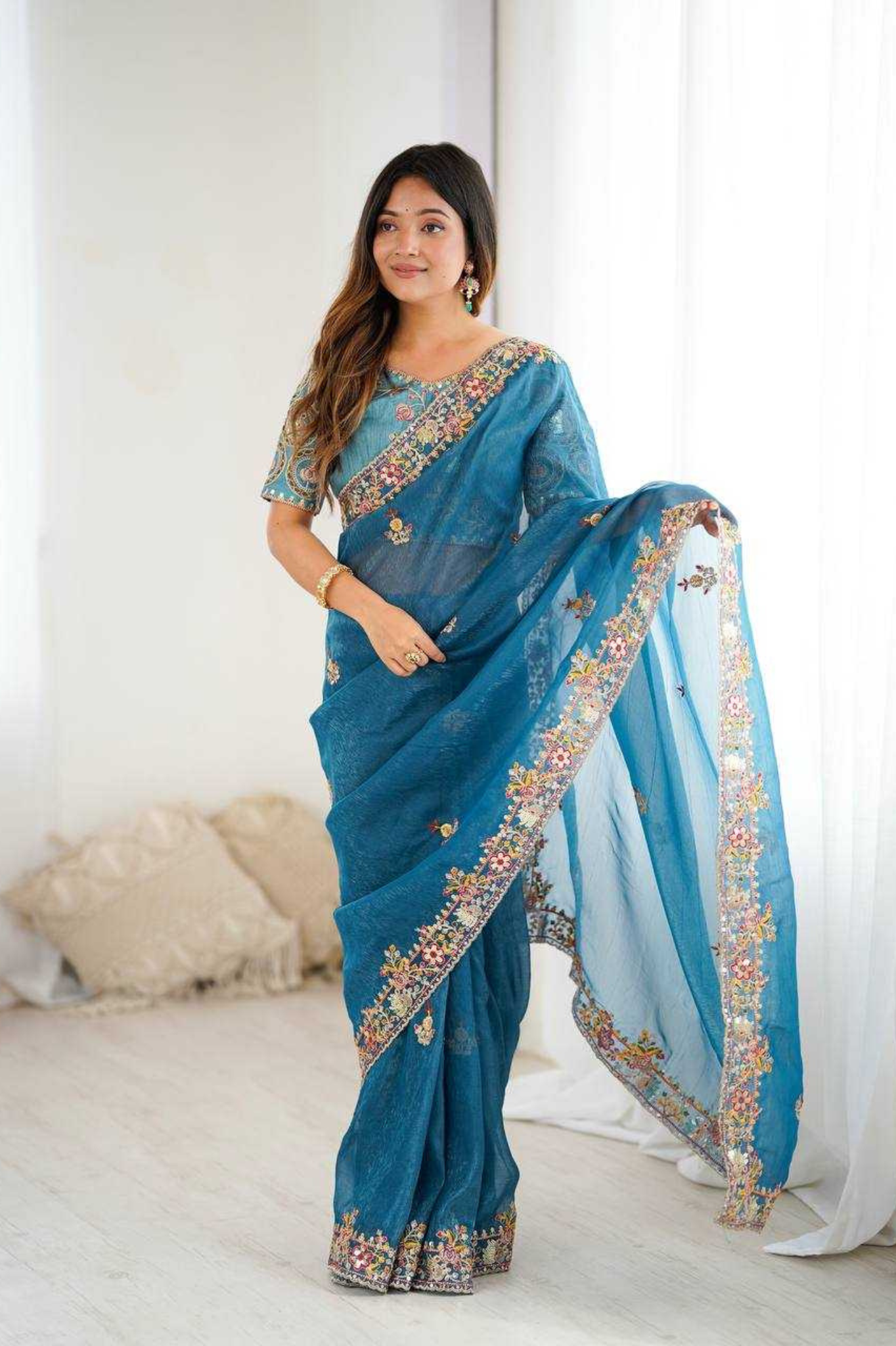 Premium Crunchy Silk Saree with Heavy Thread, Codding & Sequin Embroidery