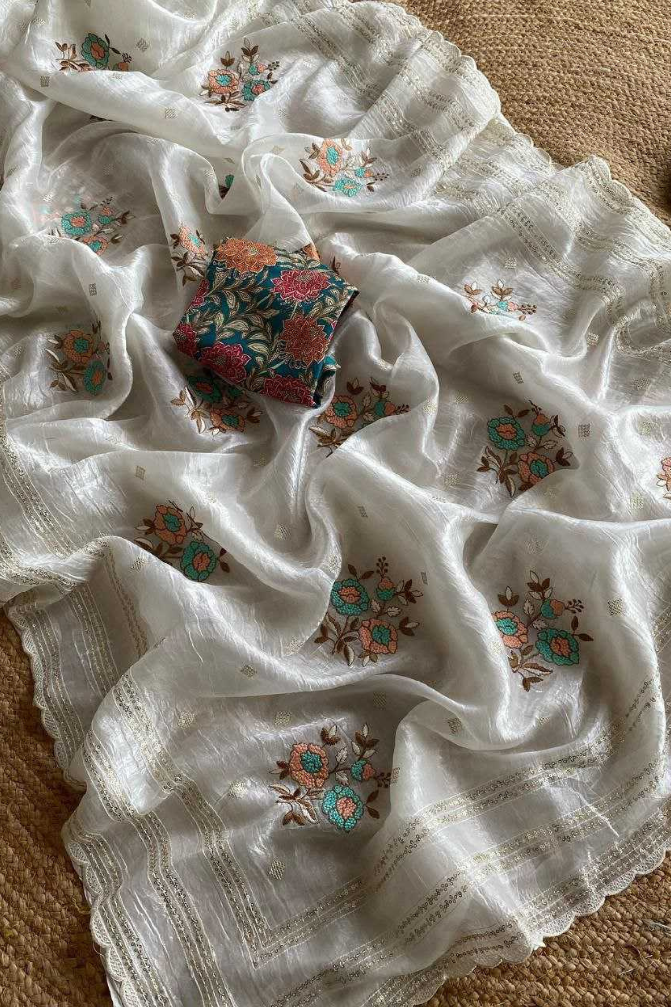 Crunchy Chiffon Saree with Scallop & Thread Embroidery Work