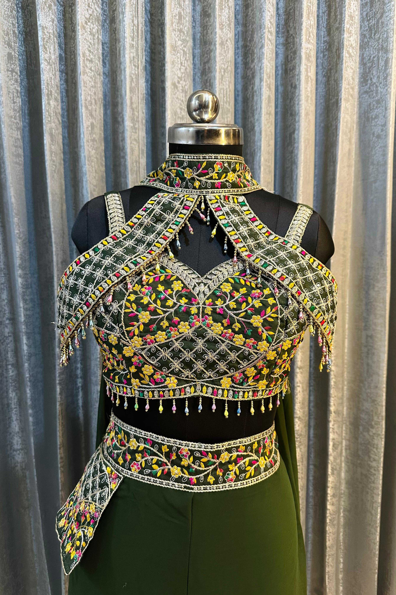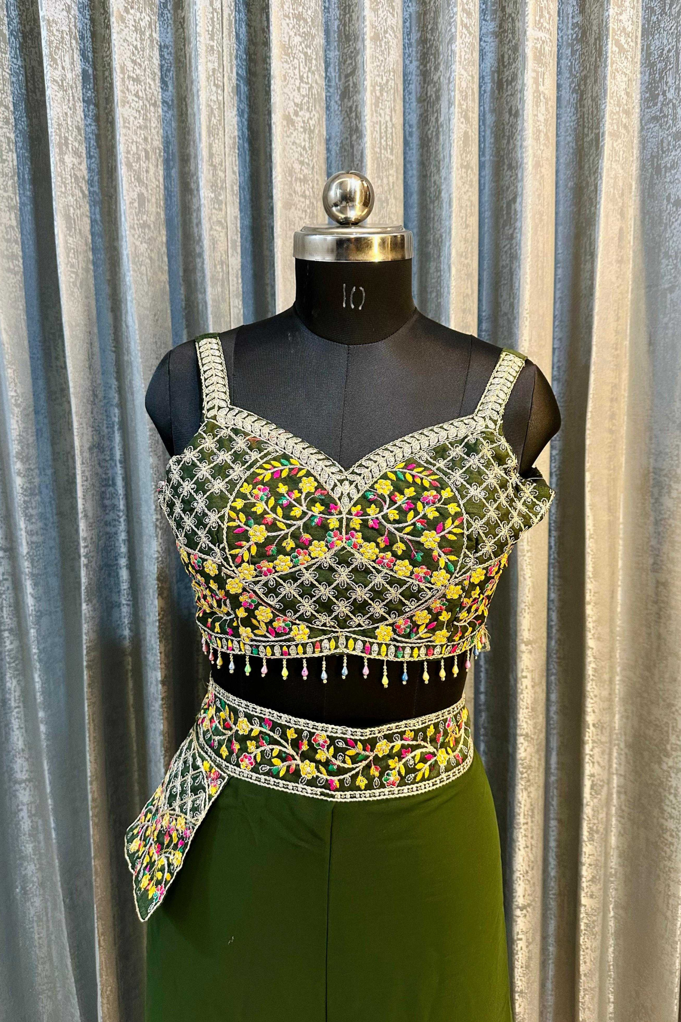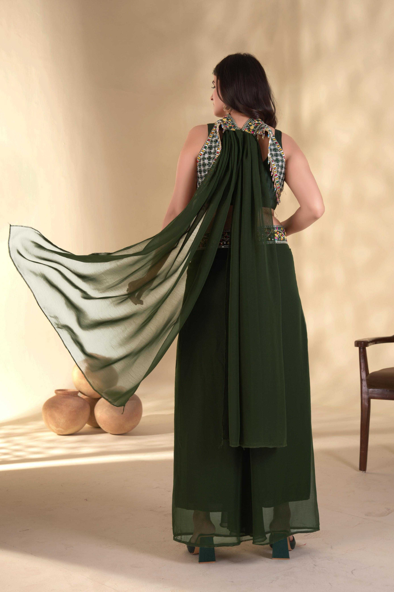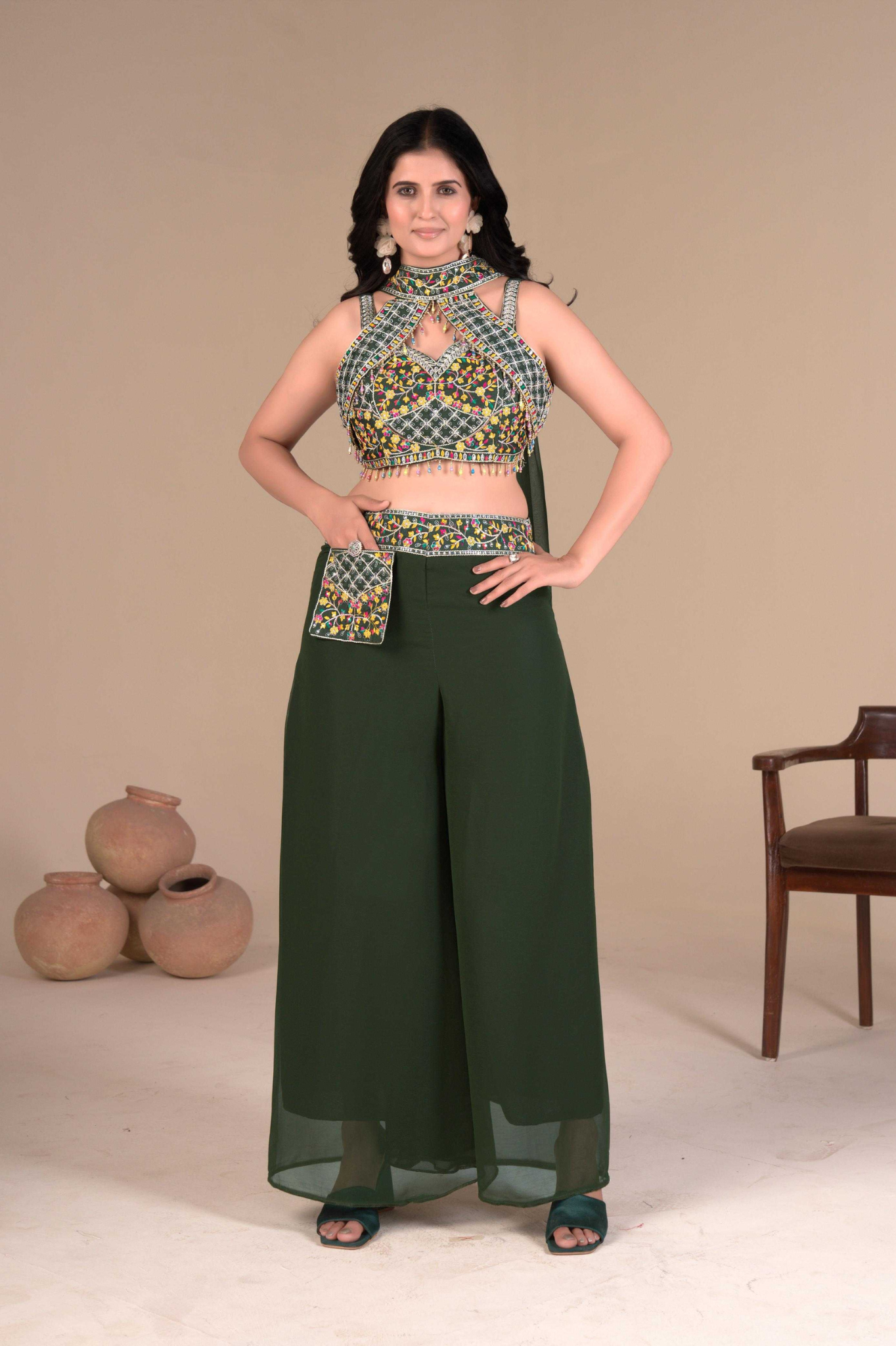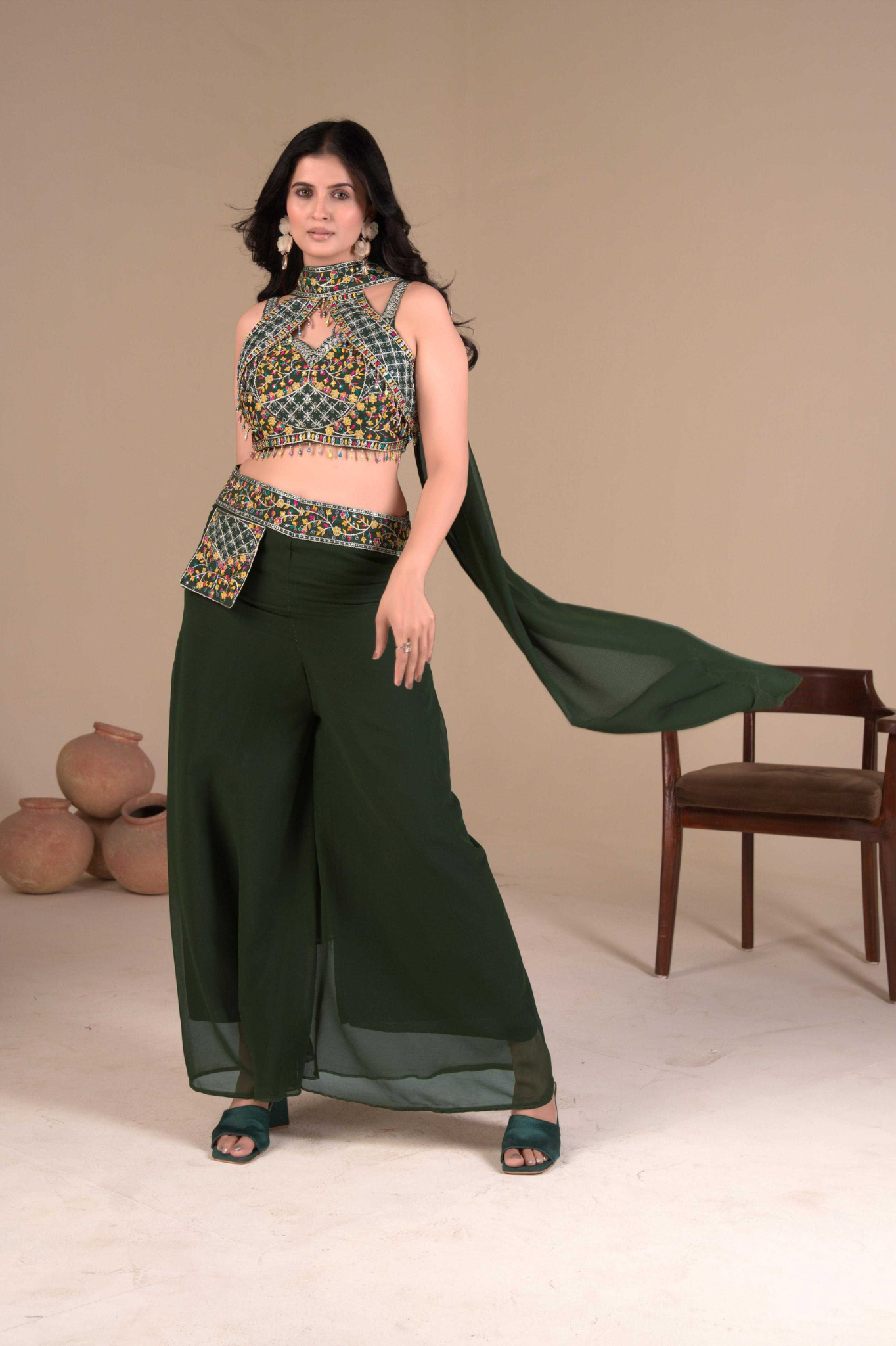 Designer Green Indo-Western Palazzo Set with Embroidered Blouse & Dupatta