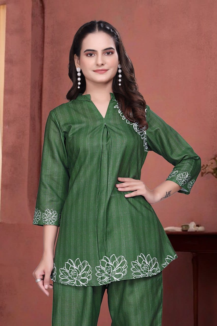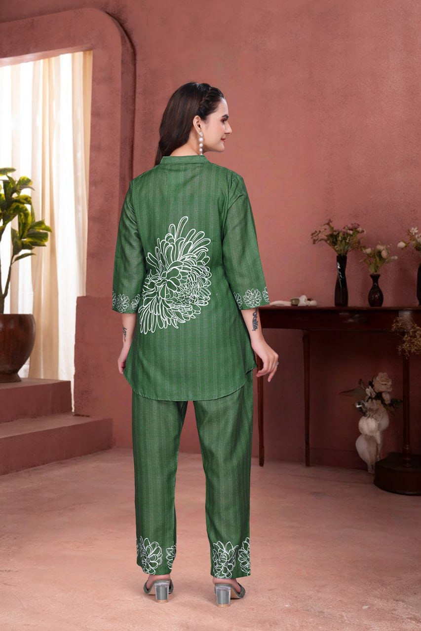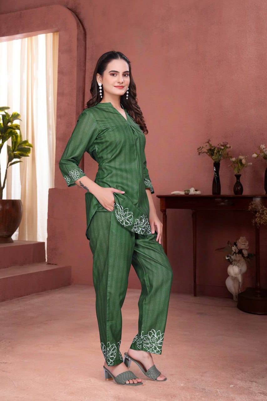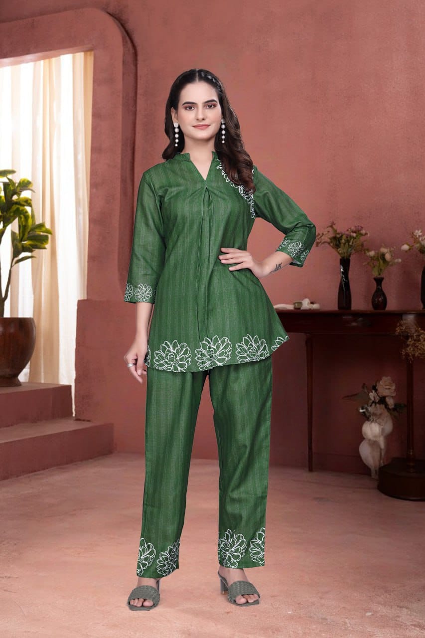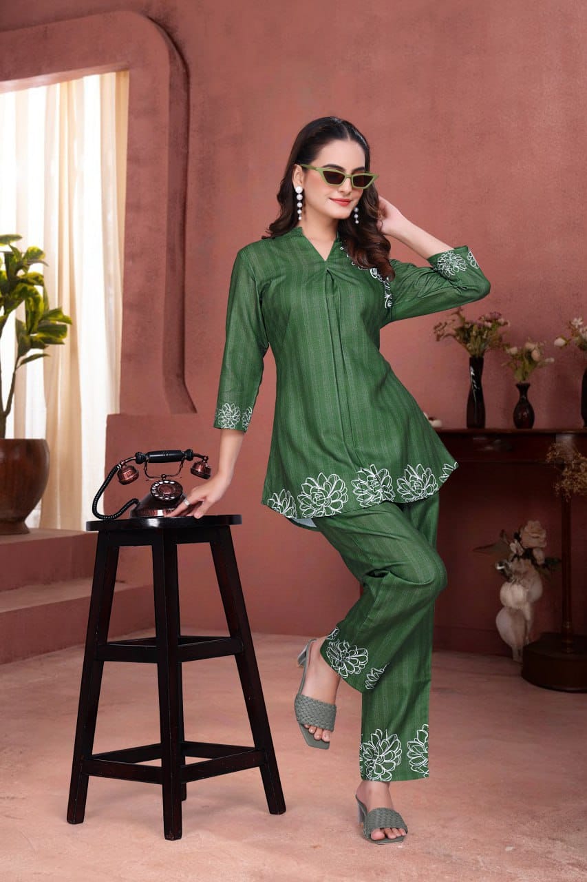 Radiate timeless elegance with the Emerald Grace Cotton Co-ord Set, crafted in a rich green tone that symbolizes freshness and sophistication. Made from soft, breathable cotton, this set combines comfort with understated charm.