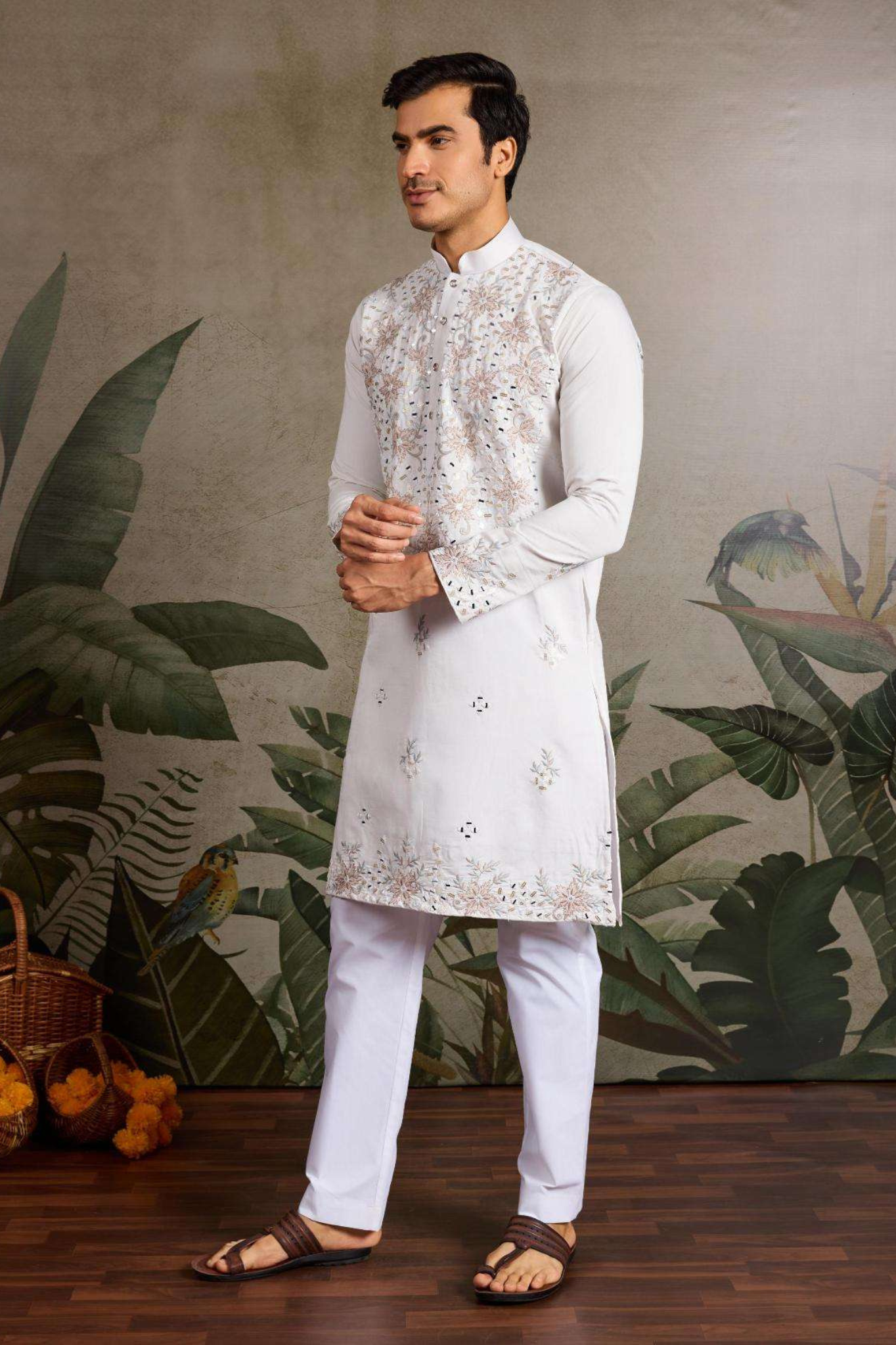 This White Kurta Set is crafted for elegance and grandeur, featuring exquisite embroidery in floral patterns on the front side...