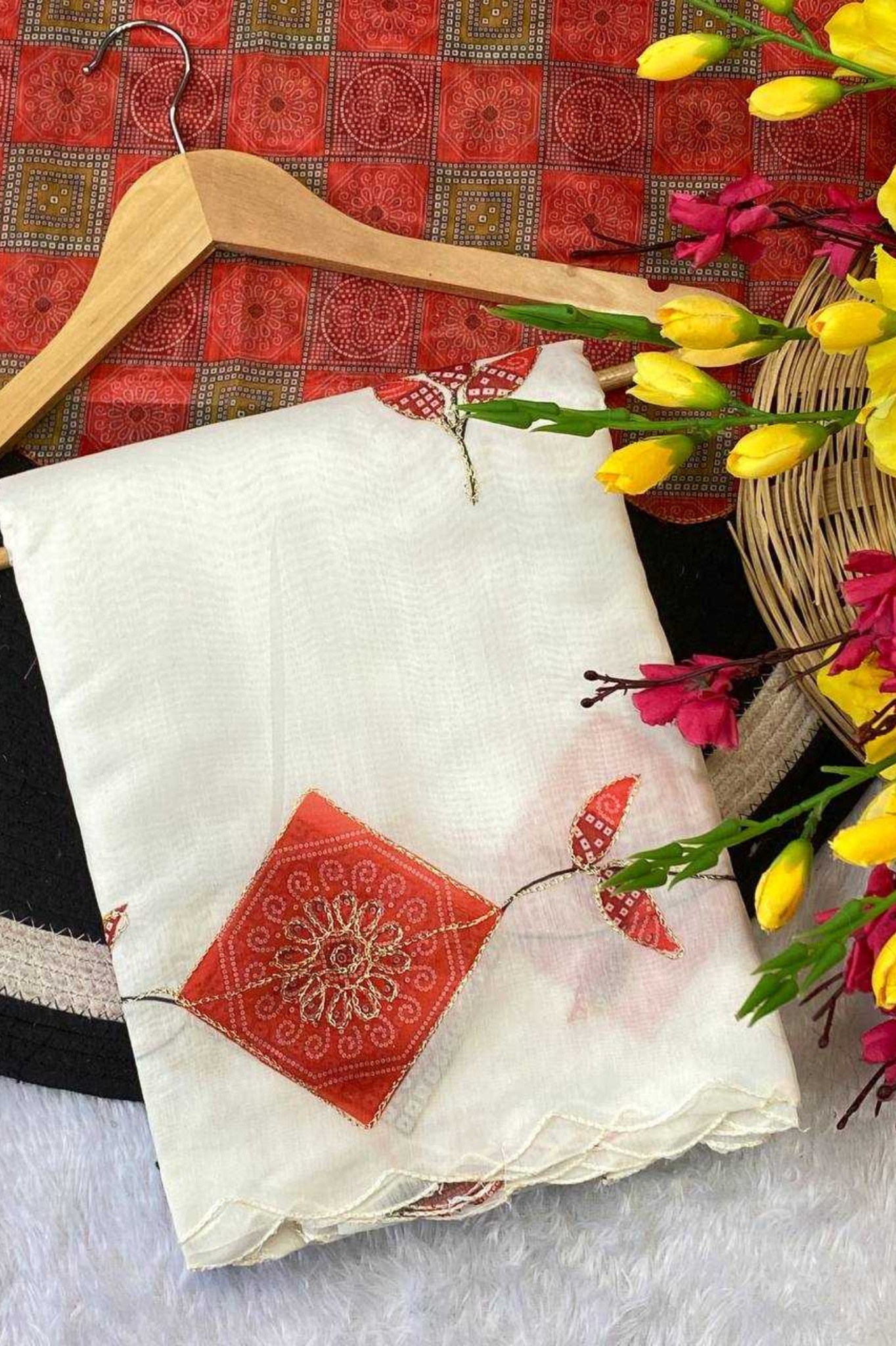 Light as air, lovely as a dream. Embrace effortless elegance with our Chiffon Saree, featuring floral prints kissed with a dainty pearl lace border. Whether it’s a festive brunch or a graceful evening look, this saree lets you float through the moment in soft...