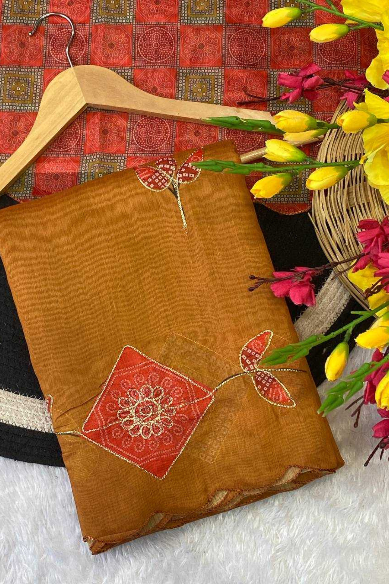 Grace meets comfort in this Soft Chanderi Cotton Saree, featuring delicate embroidered motifs and an elegant zari patti border that enhances its traditional appeal. The saree comes with a contrast designer checks blouse, adding a modern touch to its classic charm. Lightweight and breathable, it’s perfect for winter occasions, festive gatherings, and casual celebrations, offering effortless drape and refined sophistication.