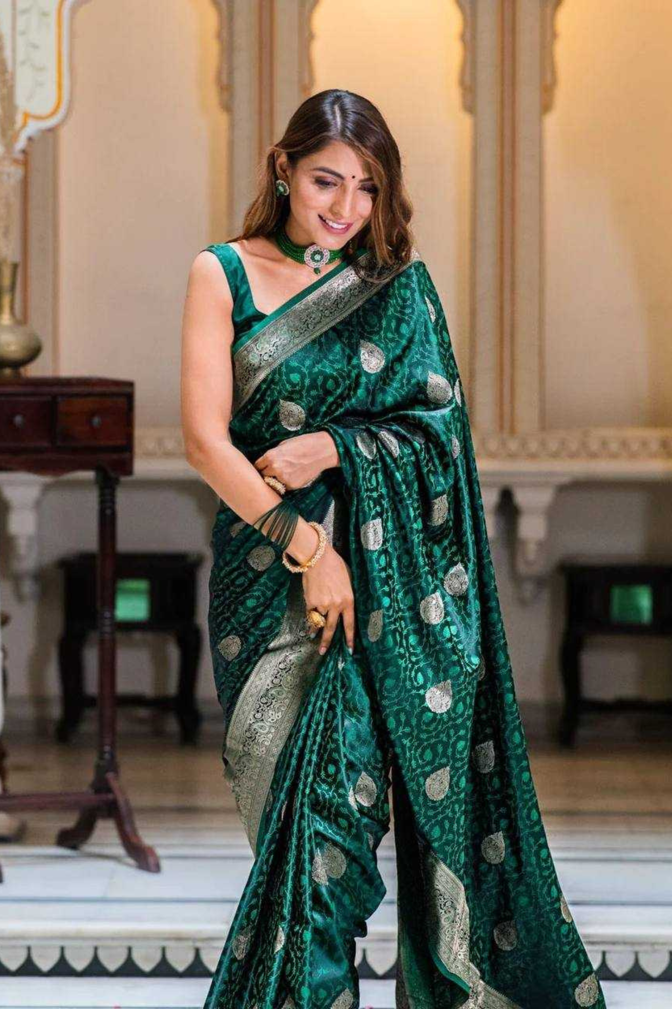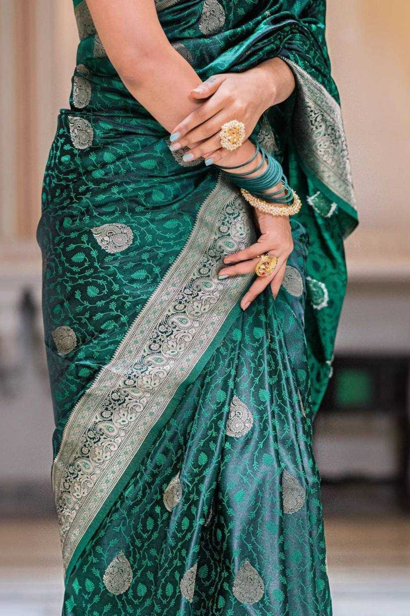 Green Soft Lichi Silk Saree with Rich Zari Pallu & All-Over Jacquard Weave