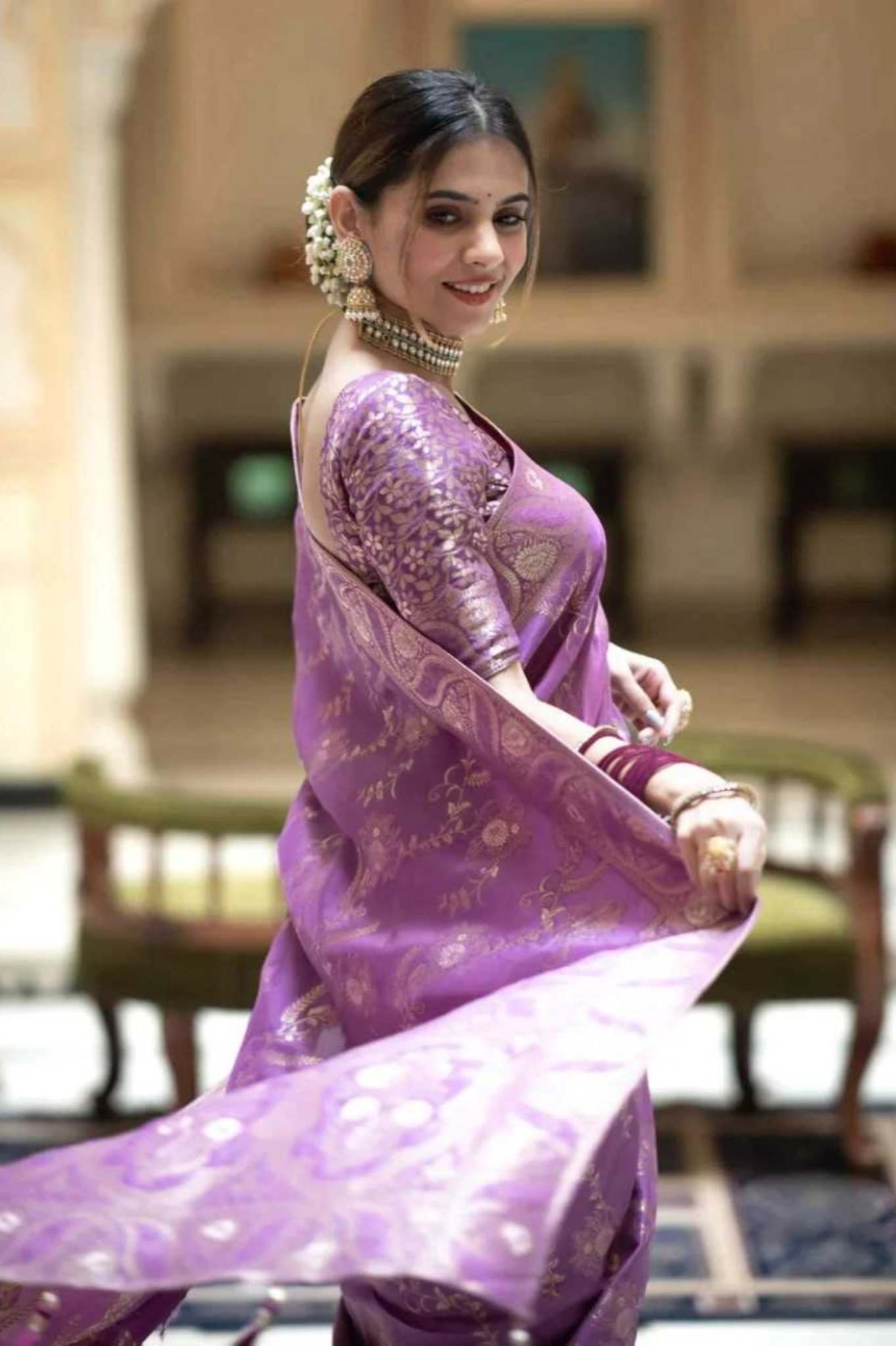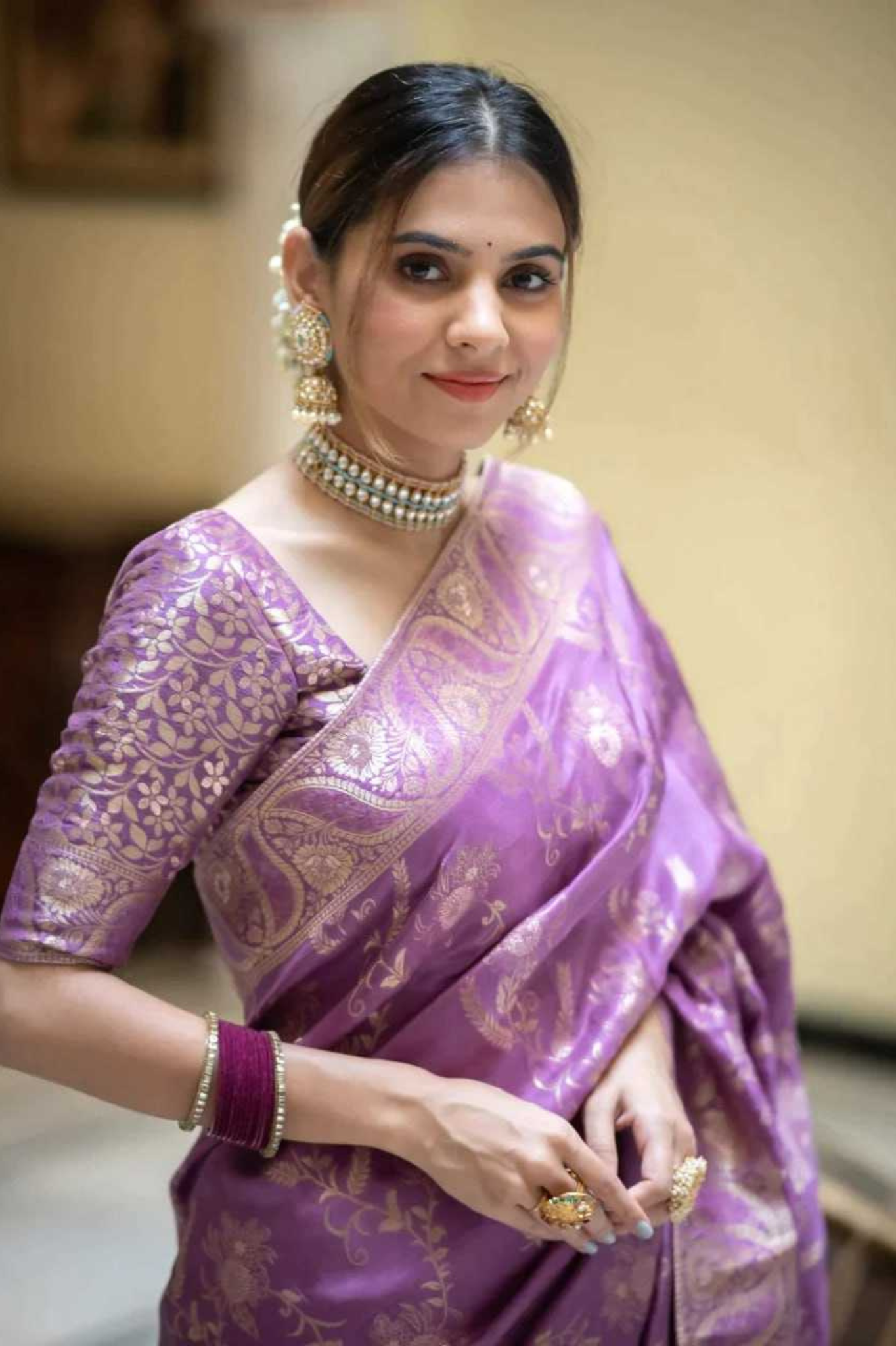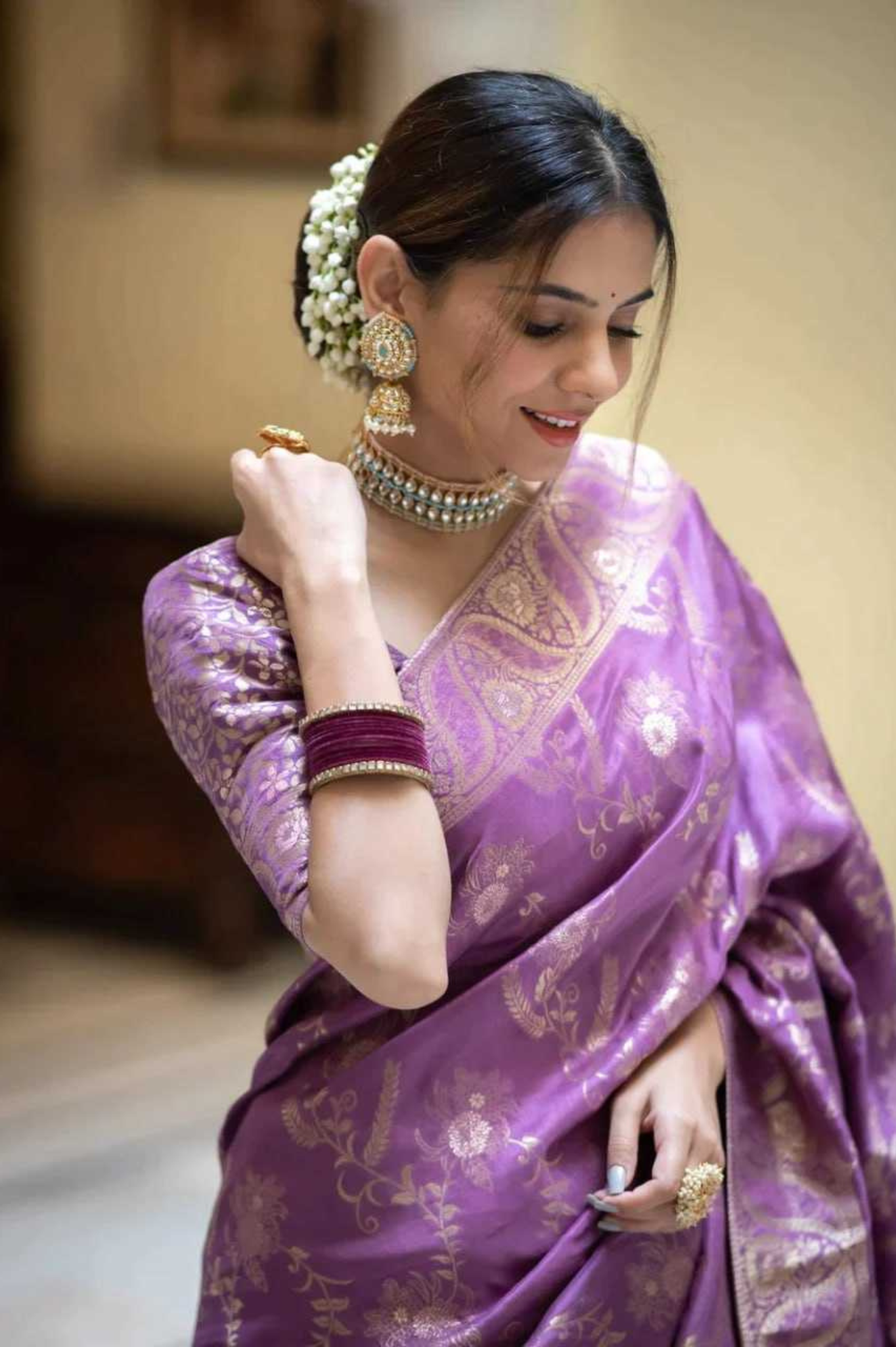 Purple Kanjivaram Banarasi Silk Saree with Rich Zari Weaving & Jacquard Blouse