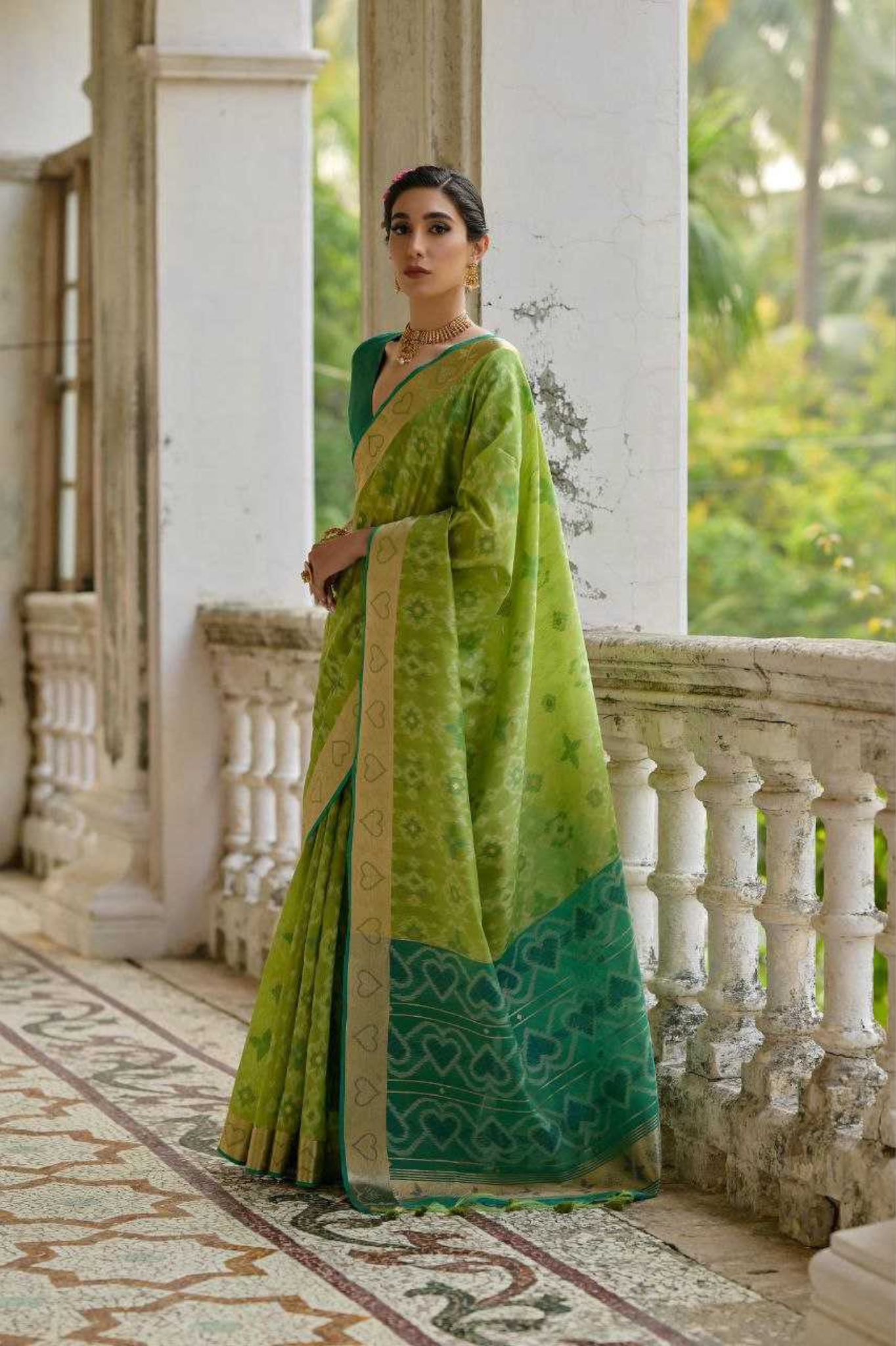 Green Soft Desi Raw Silk Saree with Pochampally Ikkat Concept & Zari Weaving Border